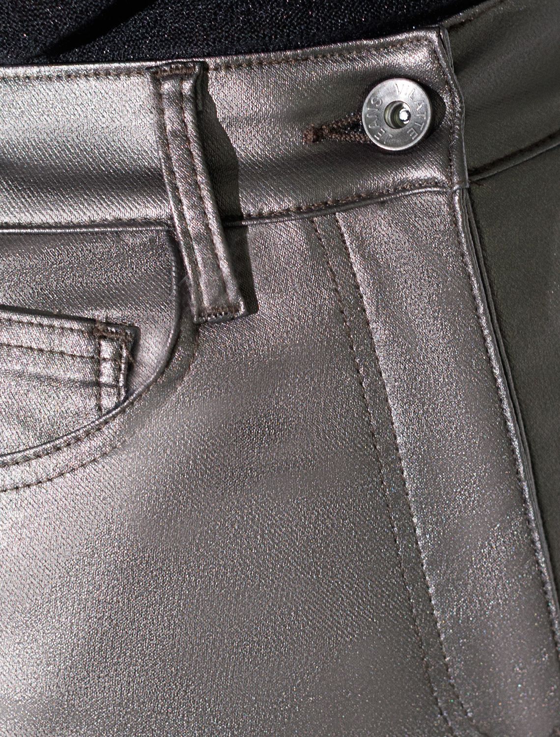 Прямая юбка с темно-серебристым металлизированным покрытием средней длины создает эффектный образ, визуально вытягивает силуэт и подчеркивает стройность фигуры. Разрез внизу придает дополнительную свободу движений и делает образ еще более привлекательным, а металлический мягкий блеск добавляет изящества и современности. Юбка отлично смотрится как на маленьких, так и на больших размерах благодаря продуманному крою и качественному эластичному материалу. Мягкая структура ткани обеспечивает комфорт даже при длительном ношени и приятные тактильные ощущения, сохраняет форму после стирок.