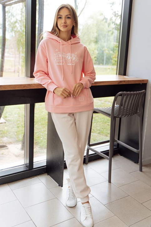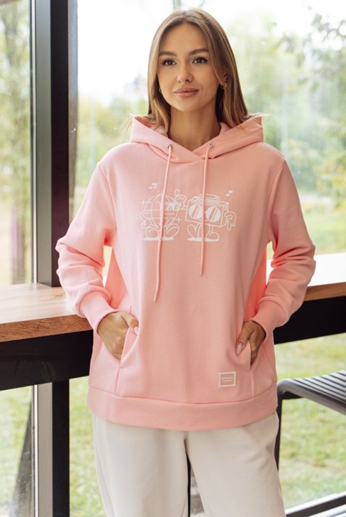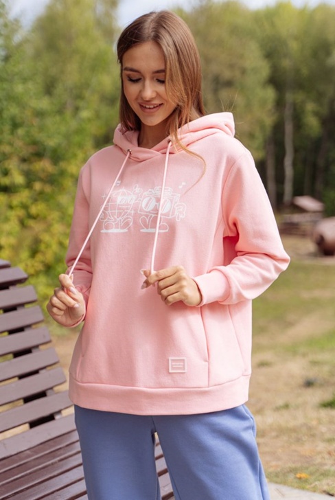 Джемпер свободного прилегания с капюшоном выполнен из футера «pike» с начесом. Длинный рукав обработан кашкорсе.