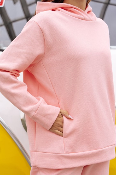 Джемпер свободного прилегания с капюшоном выполнен из футера «pike» с начесом. Длинный рукав обработан кашкорсе.