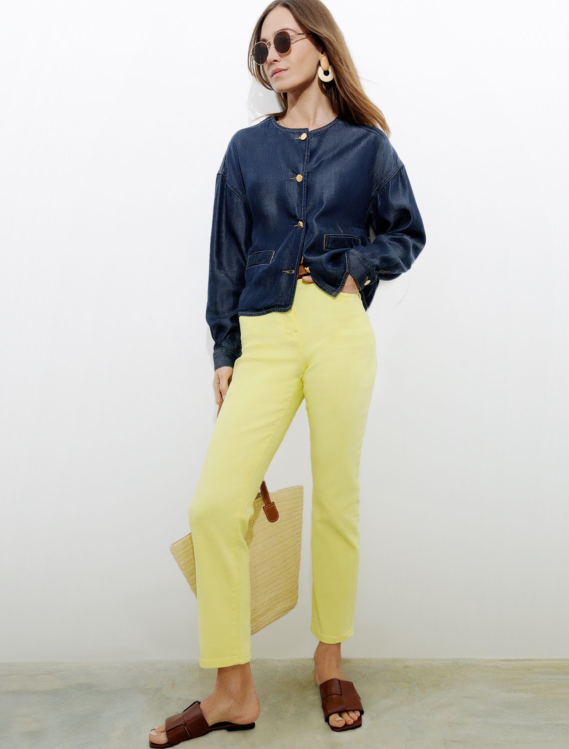 Ст.цена 2490р Укороченные прямые джинсы из супер-эластичного денима D54.059 лимонный желтый