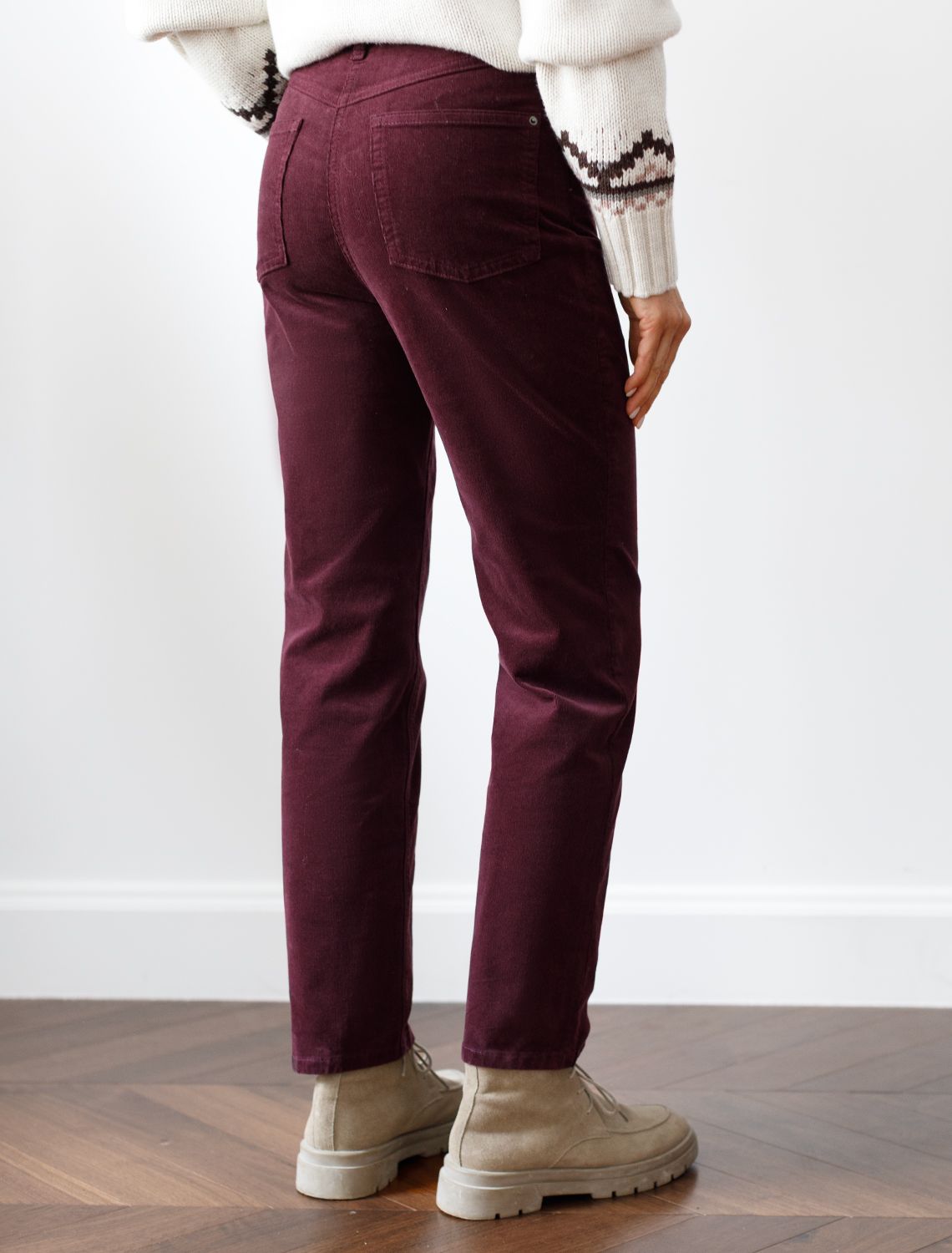 Вельветовые брюки женские зауженные в фасоне мом слим станут идеальным дополнением к теплому образу осенью и зимой. Они выполнены из мягкой хлопковой эластичной ткани, которая обеспечивает комфорт и защищает от холода.