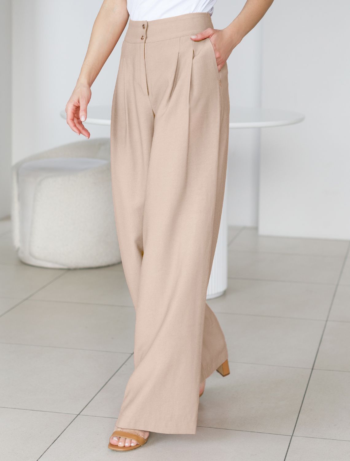 Ст.цена 2890р Брюки-палаццо из плотного лиоцелла D24.267 светло-бежевый