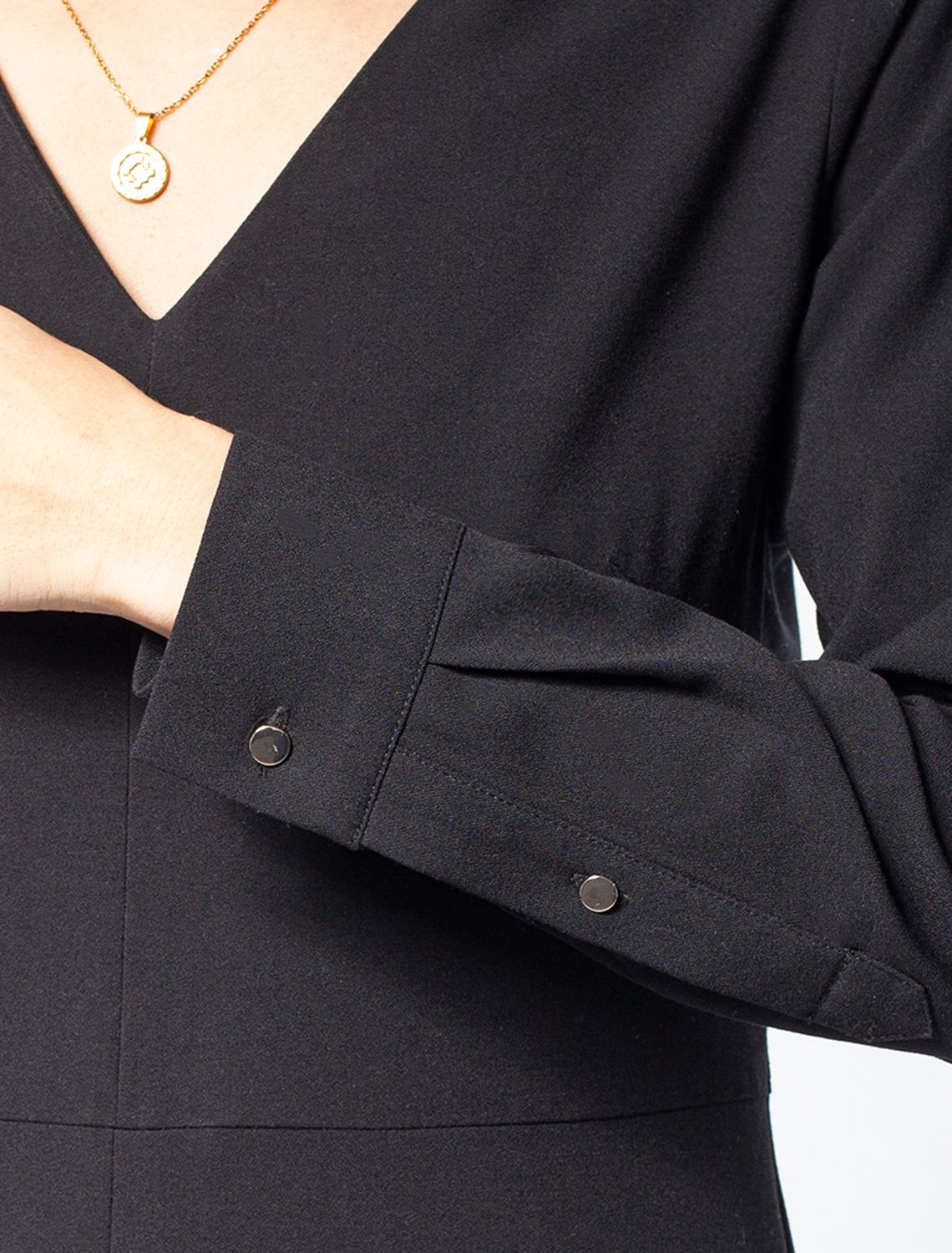 Платье приталенного силуэта и воротником-поло. Выполнено из эластичного крепа. Универсальная модель и трендовый крой в стиле 70-х годов, выгодная инвестиция для повседневного образа, деловой встречи или вечернего выхода. Можно носить с поясом, чтобы дополнительно подчеркнуть талию и А-силуэт.