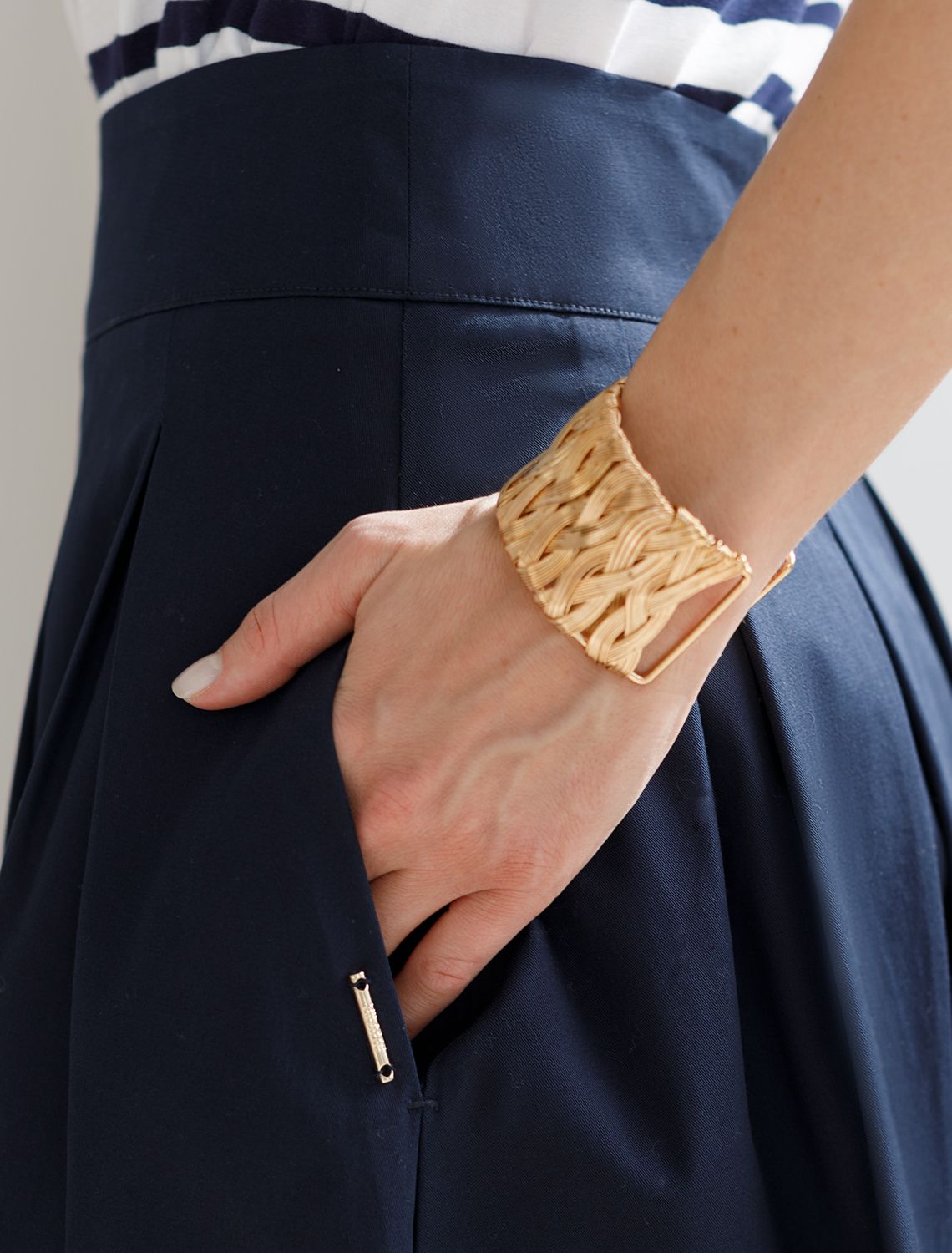 Женская юбка длины миди в складку расклешенного силуэта из хлопкового твила. Модель имеет застёжку на молнию. Визуально подчеркивает талию и бедра, подходит как для повседневного гардероба, так и для особого случая. Натуральный материал ткани обеспечивает высокий уровень комфорта, отличную гигроскопичность и воздухопроницаемость. Эластан в составе изделия минимизрует деформацию модели и продлевает срок носки.