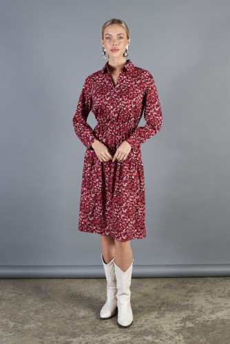 Платье из вискозной плательной ткани прямого силуэта с застёжкой на пуговицы. Втачной короткий рукав с отворотом. Вырез горловины оформлен английским воротником, который визуально сделает фигуру стройнее и подчеркнет красивую линию груди. В комплекте пояс из основной ткани.