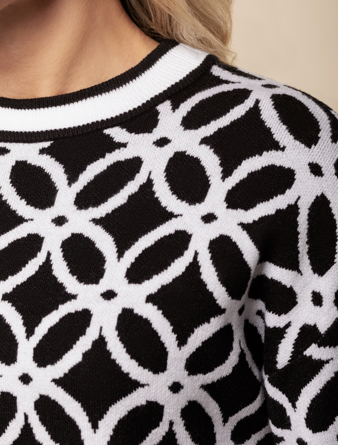 Ст.цена 3390р Платье жаккардовой вязки с кашемиром D32.056 черный-белый