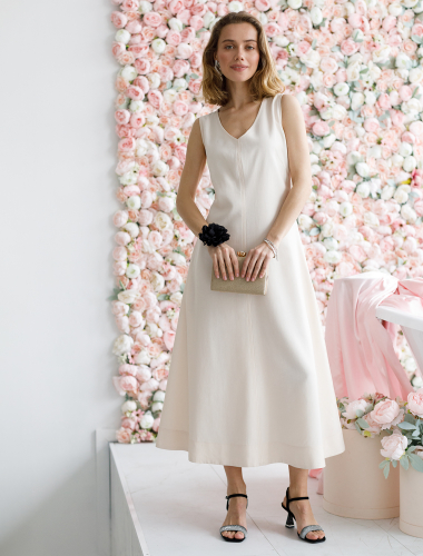 Ст.цена 3590р Платье из премиальной вискозы-твила D22.189 оливковый-пудровый