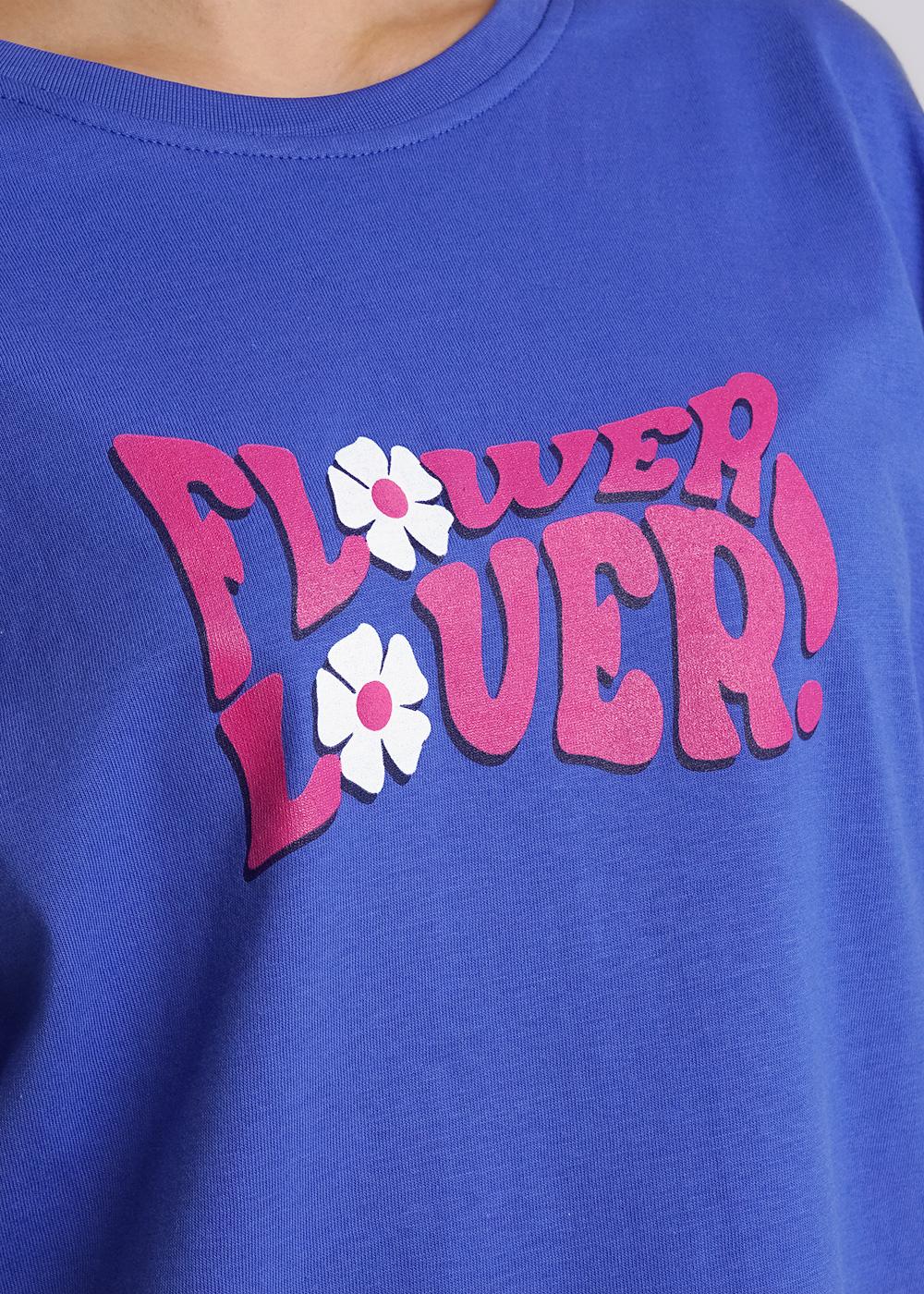 Джемпер оверсайз из хлопкового трикотажного полотна. Короткий спущенный рукав. Круглый вырез горловины обработан рибаной. По переду принт вспенкой.