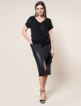 Акцентный кроп-топ с декоративными завязками. Выполнен из трикотажа тонкой вязки с люрексом. Добавление
