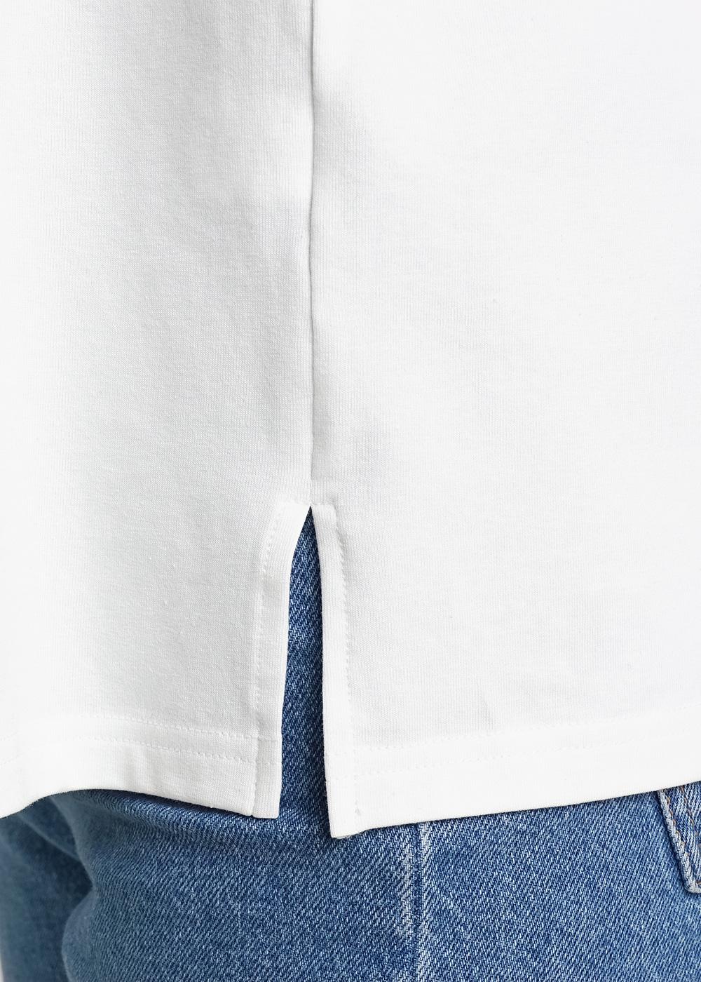 Джемпер оверсайз из эластичного трикотажного полотна. Короткий втачной рукав. Круглый вырез горловины. По бокам разрезы. По переду принт вспенка.