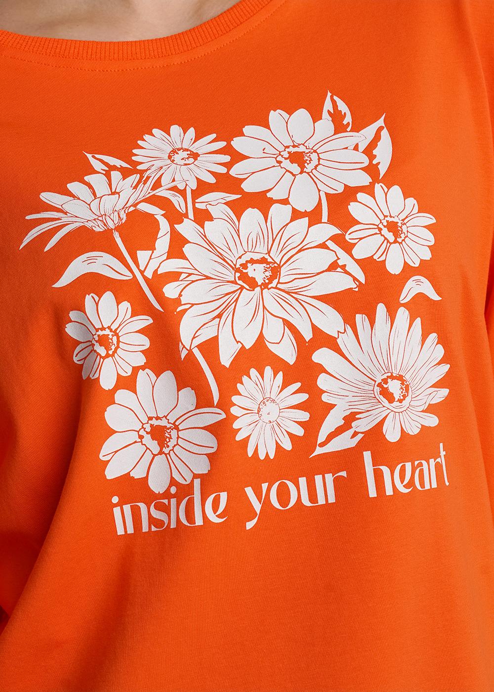 Джемпер оверсайз из эластичного трикотажного полотна. Короткий спущенный рукав. Круглый вырез горловины обработан кашкорсе. По переду принт.