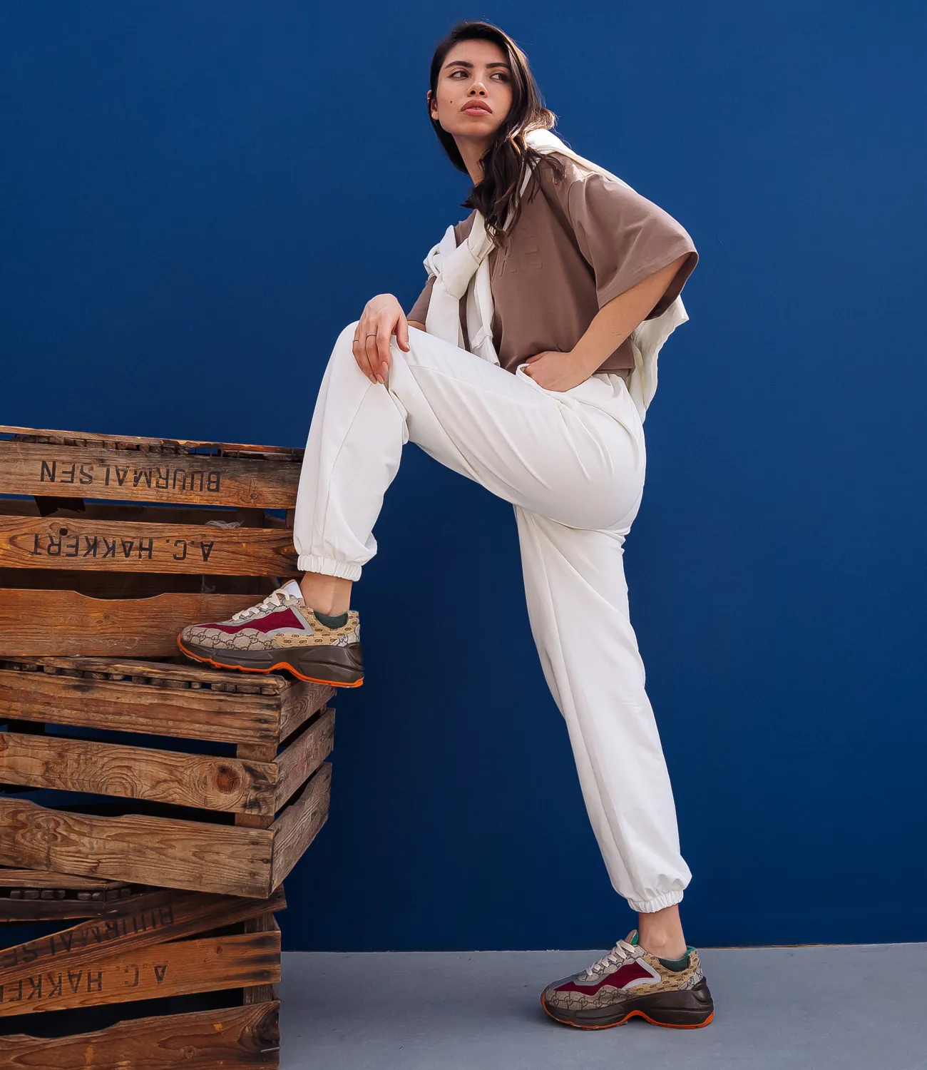 Брюки вписываются в кэжуал, спортивный, уличный стиль - все будет зависеть от аксессуаров, обуви и верха. Спортивные брюки подходят на любой тип фигуры, а благодаря хлопку в составе удобны в носке.