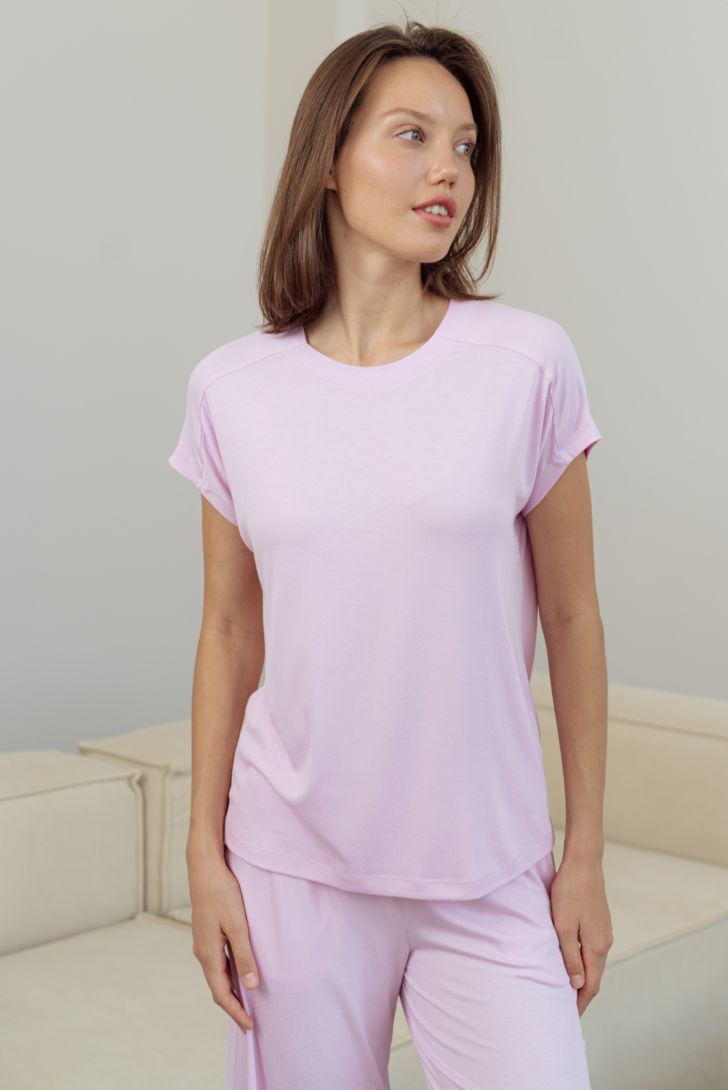 Футболка свободного прилегания со спущенным рукавом и круглым вырезом горловины из нежного вискозного трикотажного полотна. Она прекрасно сочетается с брюками и шортами данной коллекции, а так же с любыми поясными изделиями из личного гардероба. Модель представлена в 2-х цветовых решениях.