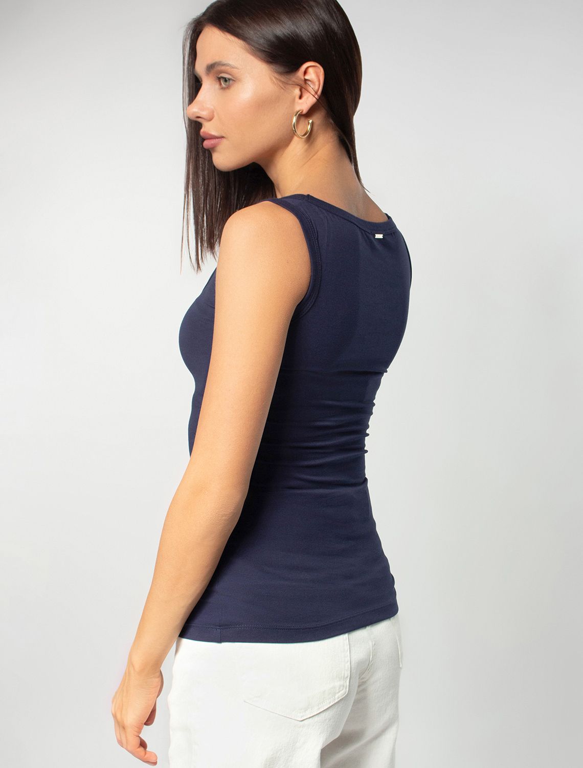 Эта базовая майка подойдет на все сезоны, в том числе, как нижний слой. Майка подходит для больших, включая 56 размер, и маленьких размеров, а также смотрится изящно как на высокий рост, так и на низкий. Благодаря своей универсальности топ будет уместен на работе, деловых встречах или в повседневном образе. Он станет гармоничным дополнением, сохраняя элегантность даже в офисной обстановке. Незаменим в поездки, в путешествия, на отдых.