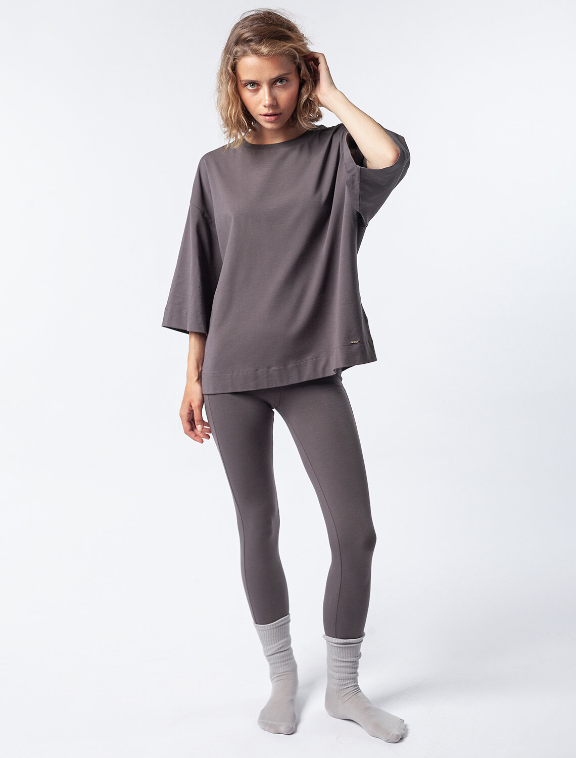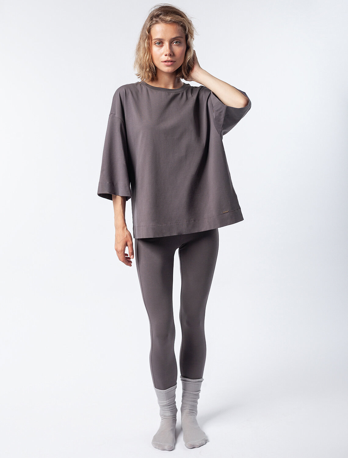 Футболка свободной формы выполнена из эластичного хлопка. Самые мягкие волокна премиального хлопка гарантируют непревзойденный комфорт в течении всего дня. Эластан в составе изделия, поддерживает форму и препятствует сминаемости. Хорошо сочетается с леггинсами D44.131, брюками D44.120 и шортами D48.007