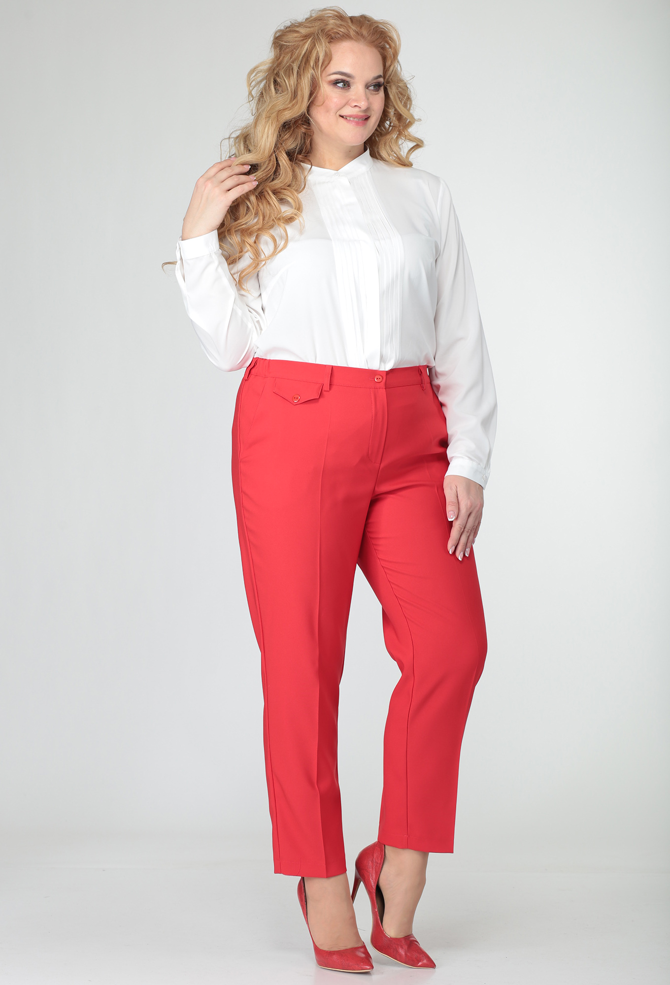 Блузка выполнена из однотонной ткани. Полочка блузки с центральной потайной застежкой на петли и пуговицы. Полочка с нагрудными вытачками и вертикальными складками по центру полки. Горловина круглой формы со стойкой. Спинка цельная, рукав втачной, одношовный, по низу на притачной манжете.