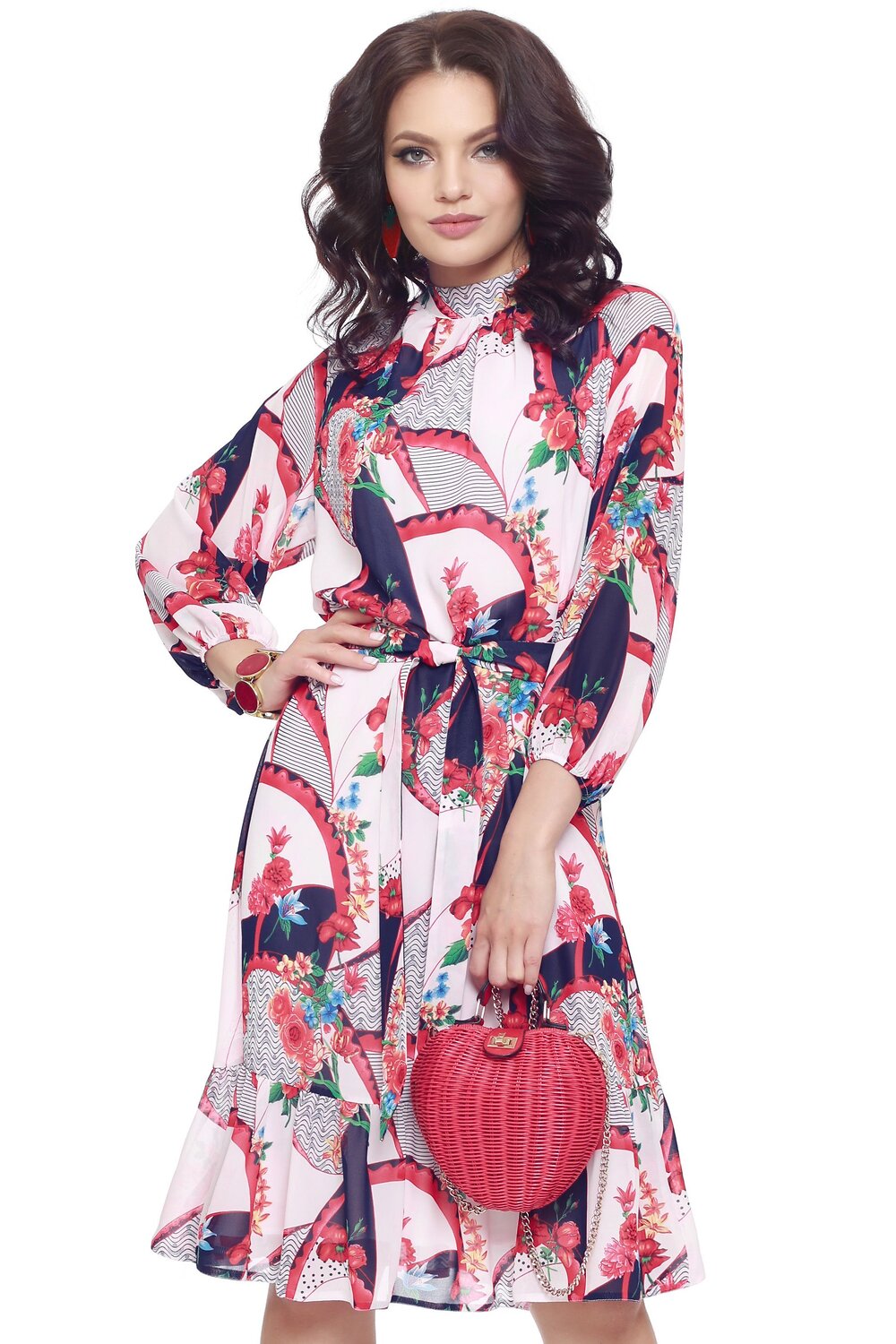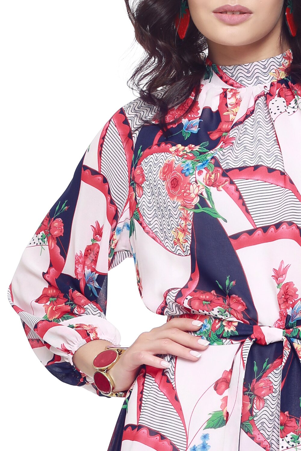 Богемное платье с рукавом реглан и воротничком-стойкой выполнено из шифона с подкладом. За счет свободного силуэта с поясом и воланом по низу юбки платье получает мягкие свободные формы, что выглядит очень романтично. Рукава присобраны на тоненький манжет. Застежка платья на пуговицах. Абсолютно самодостаточная вещь, и в пир, и в мир.