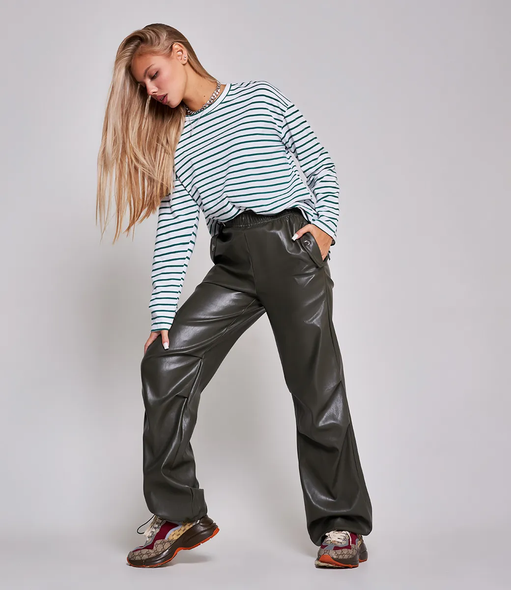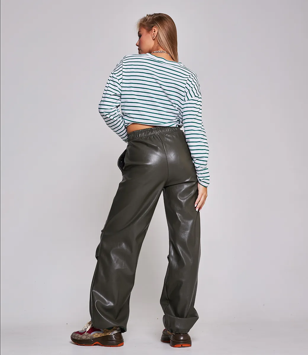 Брюки джоггеры из эко-кожи добавят в образ дерзости. Супермодная можель представленна в нескольких цветах, благодаря чему можно разнообразить свой гардероб под любой образ.