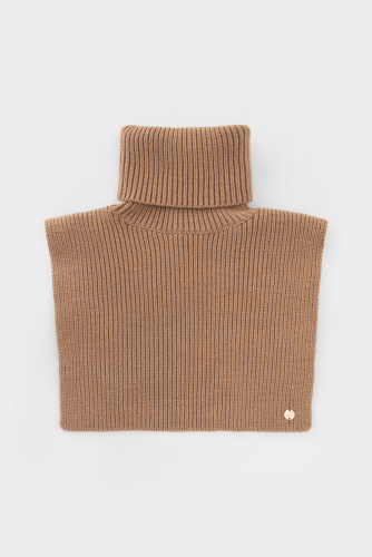 Уютная вязаная манишка с высоким воротником из шерсти и акрила. Шерсть в составе хорошо удерживает тепло, а волокна акрила делают изделие мягким и предотвращают деформацию и появление катышек. Лаконичный крой хорошо сочетается с верхней одеждой.