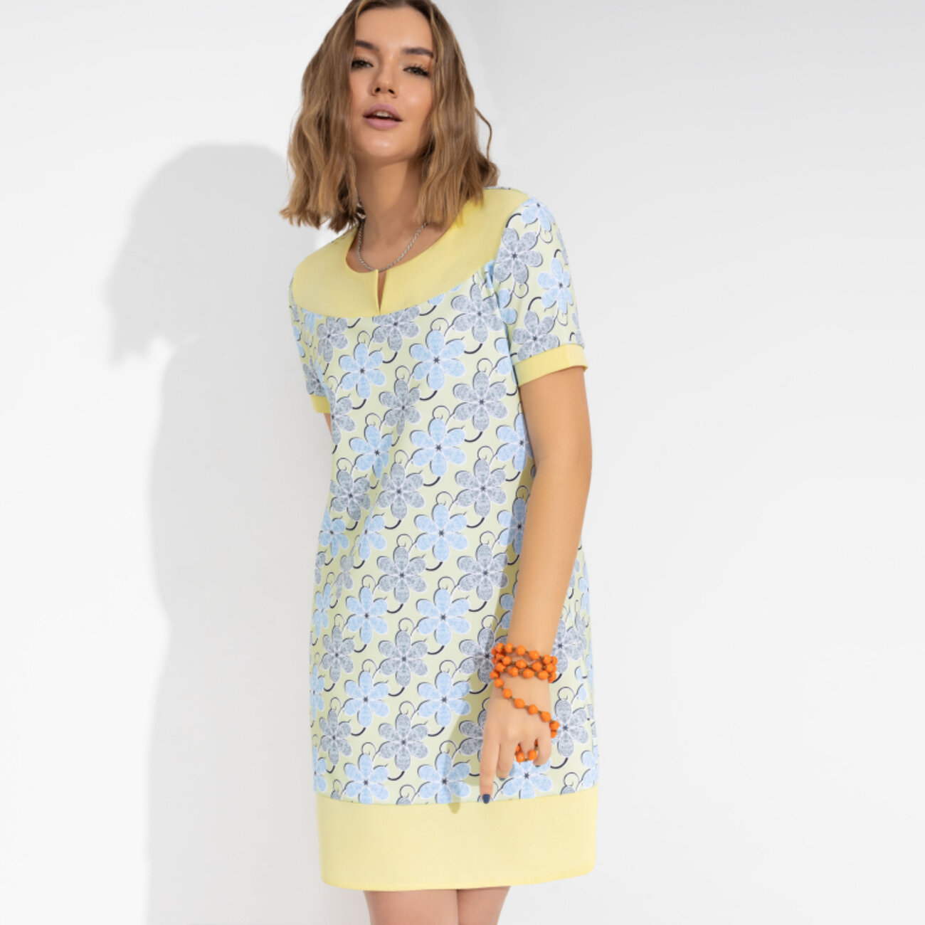 Современное платье в стиле Москвы 60-х. Ультратренд на сезон лето 2023. Нежный цветочный принт, стилизация под колор блок. Идеально садится на фигуру любой сложности, придает силуэту легкость и сексуальность.