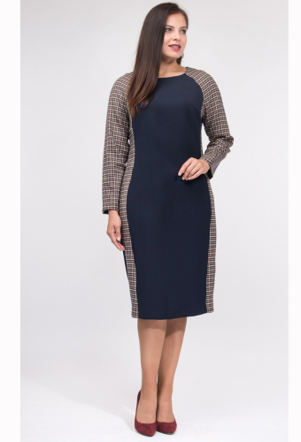 Эффектное стильное платье- футляр в стиле colorblok - выполнено на сочетании комфортной поливискозной ткани двух цветов . Рукав -реглан с верхним швом . Рельефные швы по переду и спинке . Спинка с центральным швом , застежкой на потайную молнию и шлицей внизу.Без подкладки.