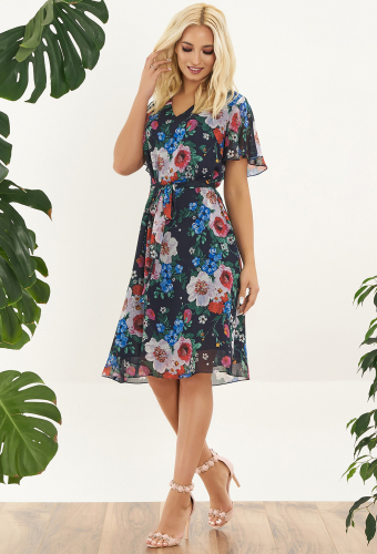 Платье миди свободного кроя с круглым вырезом горловины с небольшой сборкой по переду и застежкой на петлю и пуговицу по спинке. Талия акцентирована сборкой на тонкие резинки, что делает силуэт более женственным. Романтичность платью придает рукав-фонарик. Платье дополнено поясом-ремнем с пряжкой.