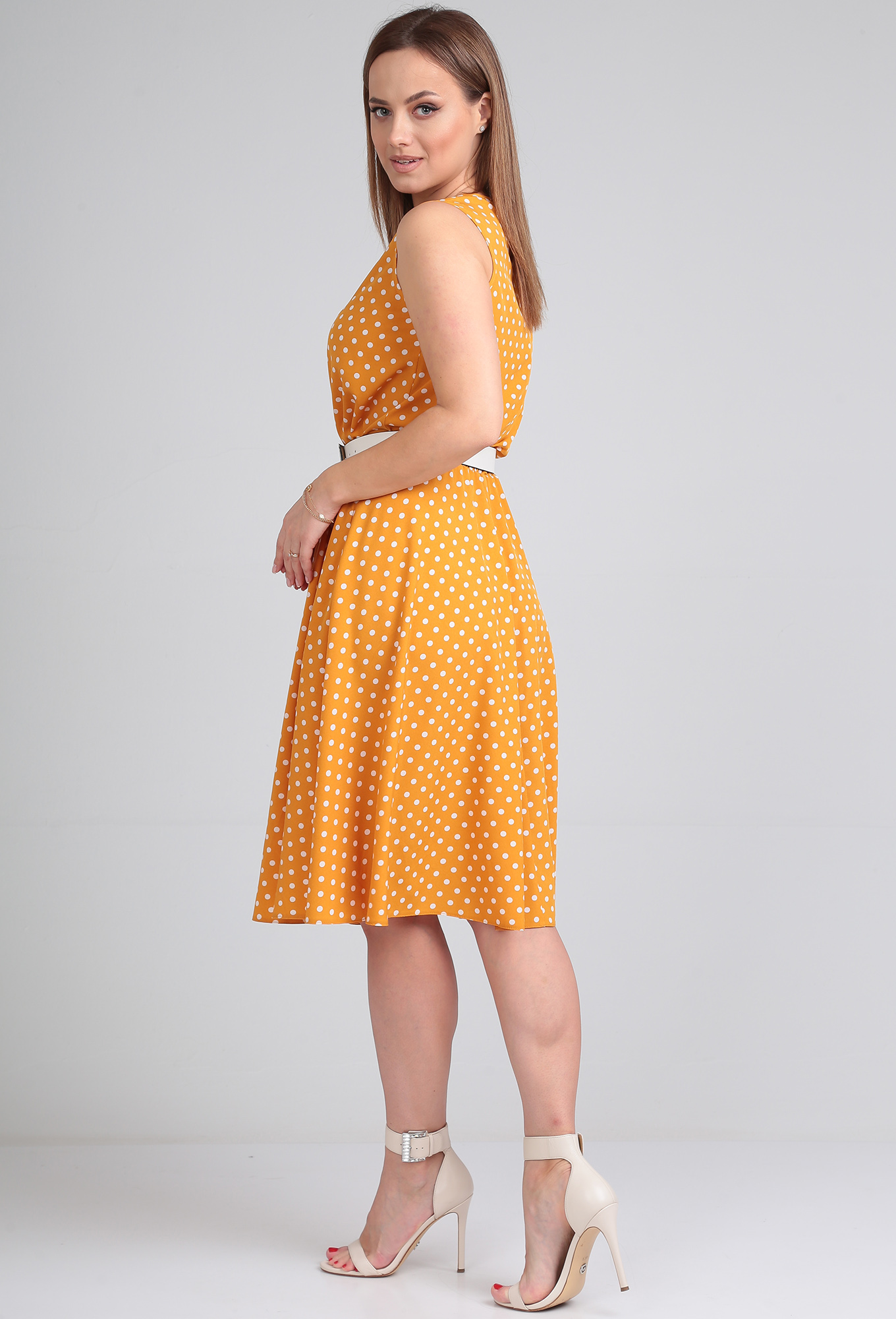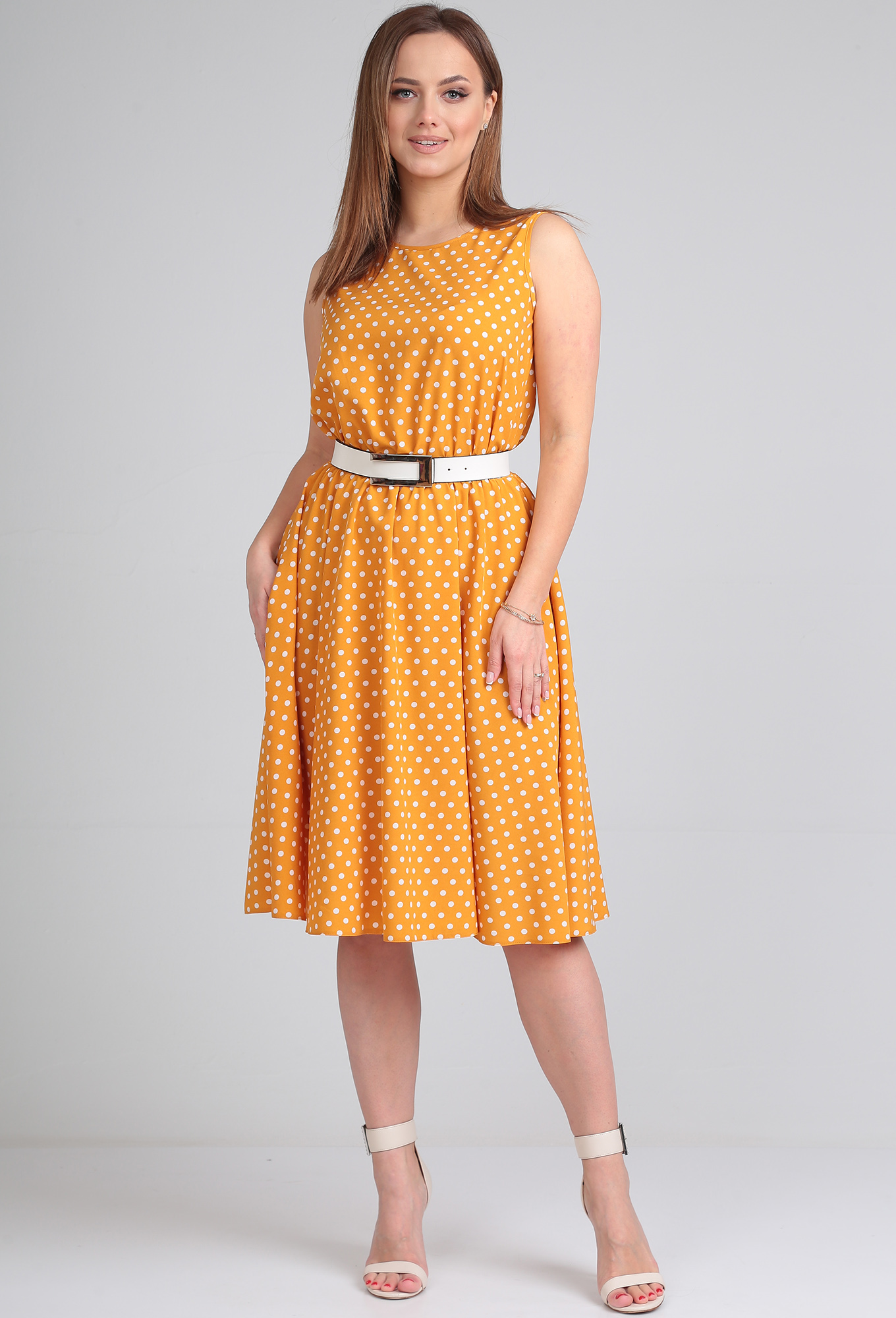 ст. цена1999руб.! Платье Lady Line 544 горчица горох