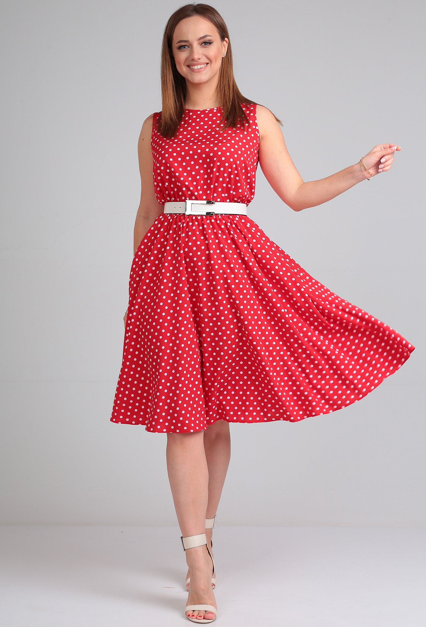 ст. цена1999руб.! Платье Lady Line 544 красный горох