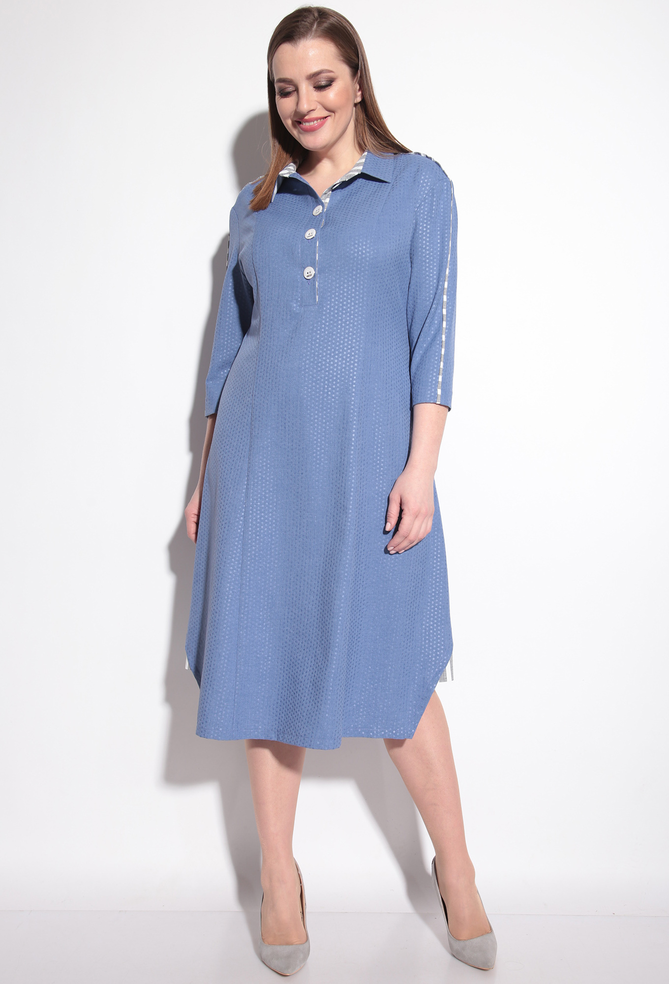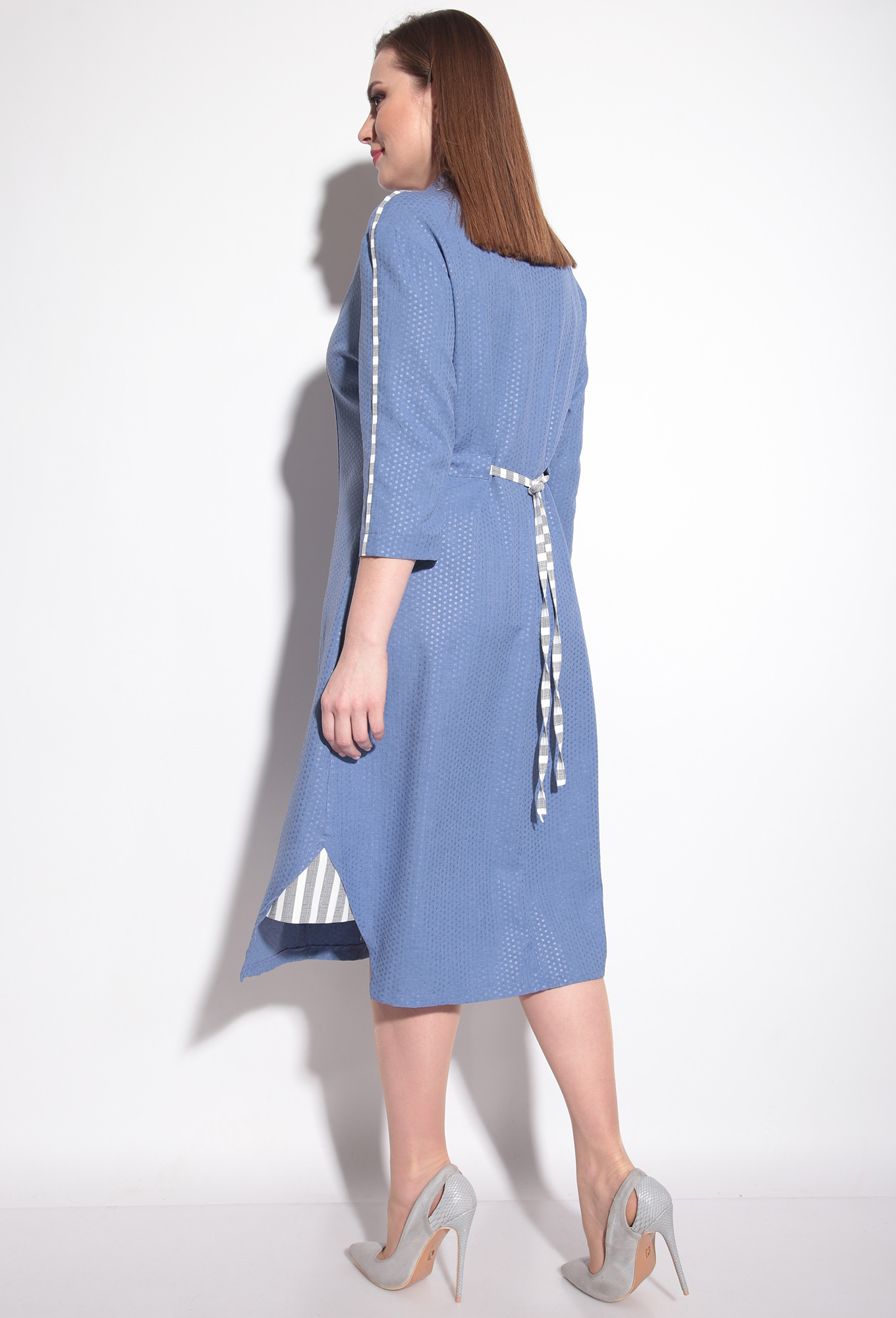 Отличное платье на каждый день из искусственного льна. Прекрасно смотрится как с классической, так и спортивной обувью. Имеет легкое клешение к низу, благодаря вертикальным рельефам прекрасно садится на любой тип фигуры, подчеркивая все достоинства хозяйки, придавая образу утонченность. Верх рубашечного типа, рукав 7/8 украшен контрастной отделкой. Прилегание изделия по поясу фиксируется декоративной стяжкой по спинке. Длина изделия по спинке 115 см, длина рукава от плеча 41 см. Изделие подойдет на рост 170 см.