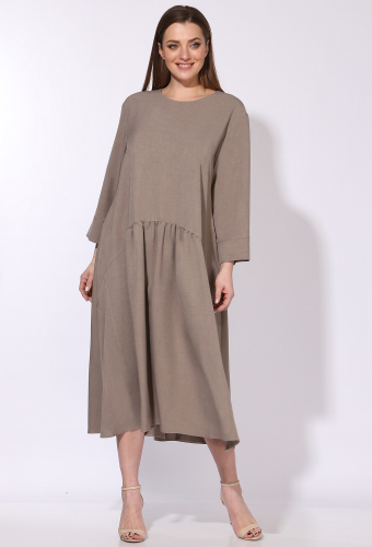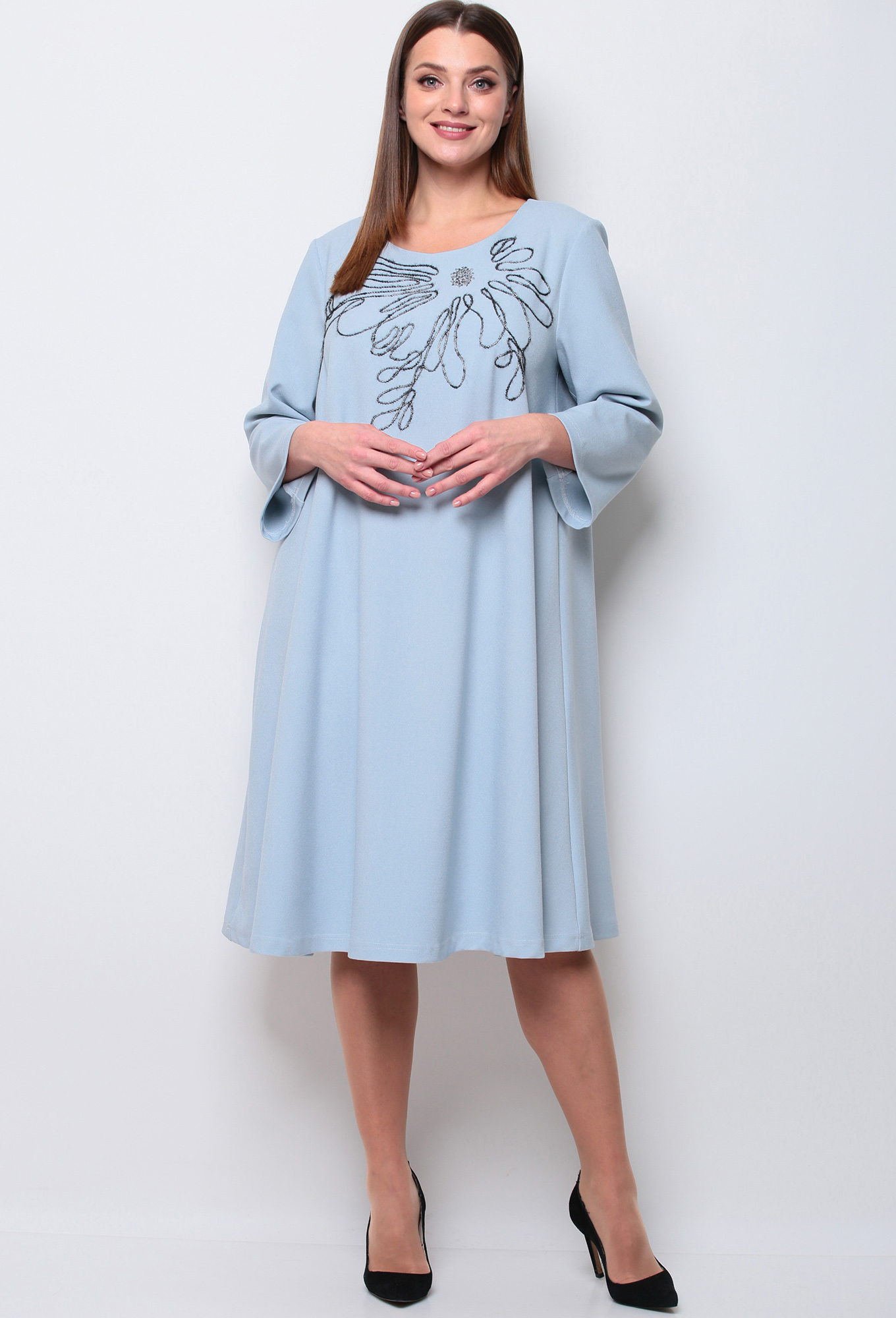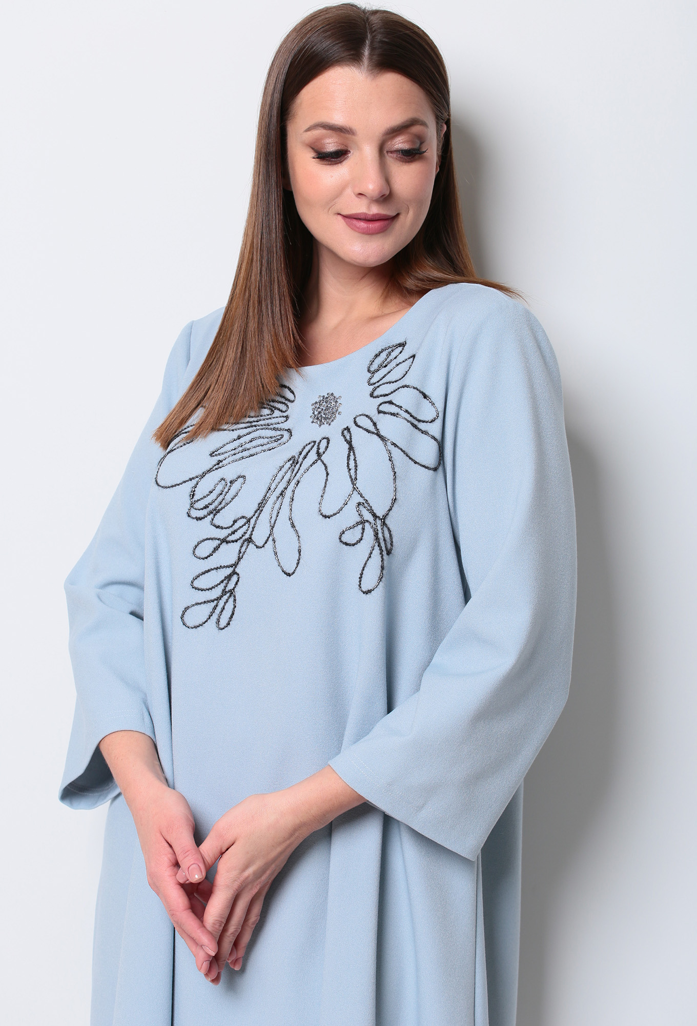 Платье А-образного силуэта выполнено из трикотажа средней плотности, простой крой и комфортность изделия сделают его незаменимым. Круглая горловина, свободный рукав 7/8. По переду изделия в качестве декора машинная вышивка. Платье прекрасно дополняется различными аксессуарами.