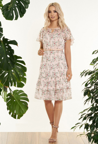 Это платье - самый оптимальный вариант для лета, ведь такая расцветка и фасон не только всегда актуальны, но и ткань будет приятна к телу! Двухъярусное платье А силуэта, верхний из шифона с дизайном, нижний из креп шифона с притачным воланом. Платье имеет асимметричный низ, декоративное украшение по горловине в виде косички из ткани, рукав расширенный к низу до локтя.