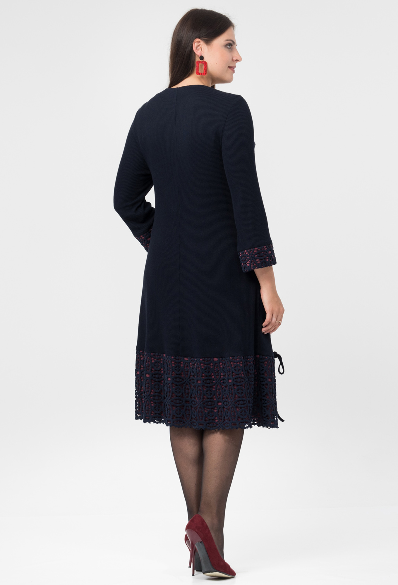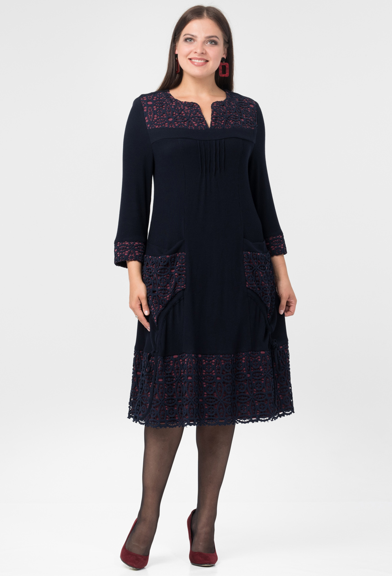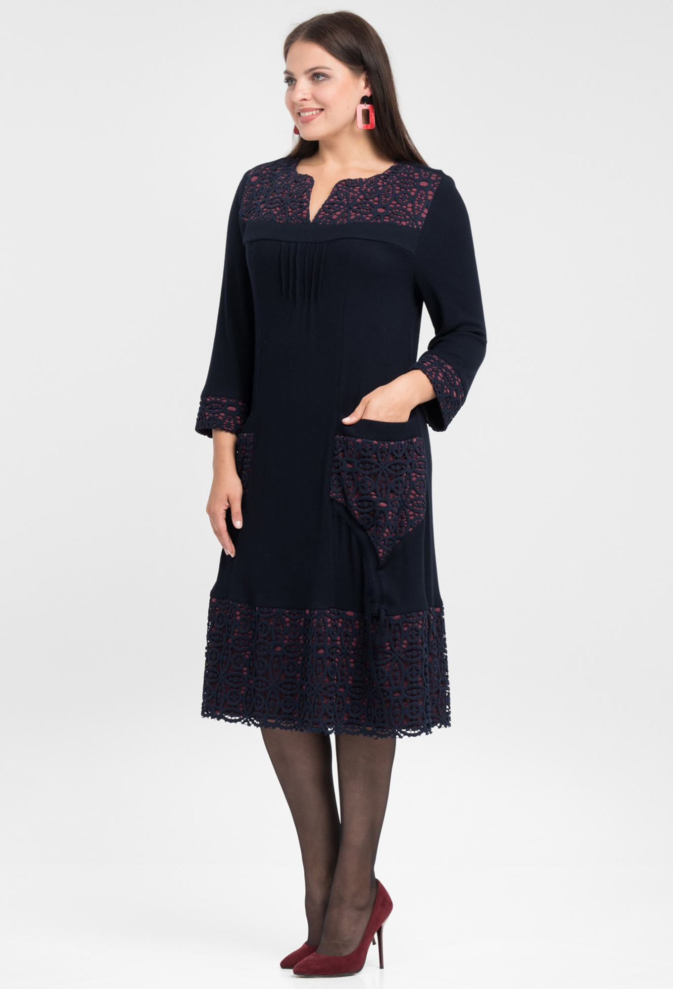 Удобное  трикотажное платье из трикотажа. Кокетка, манжеты и воротник из красивого вязаного кружева .