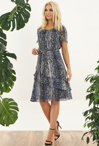 Это платье - самый оптимальный вариант для лета, ведь такая расцветка и фасон не только всегда актуальны, но и ткань будет приятна к телу! Двухъярусное платье А силуэта, верхний из шифона с дизайном, нижний из креп шифона с притачным воланом. Платье имеет асимметричный низ, декоративное украшение по горловине в виде косички из ткани, рукав расширенный к низу до локтя.