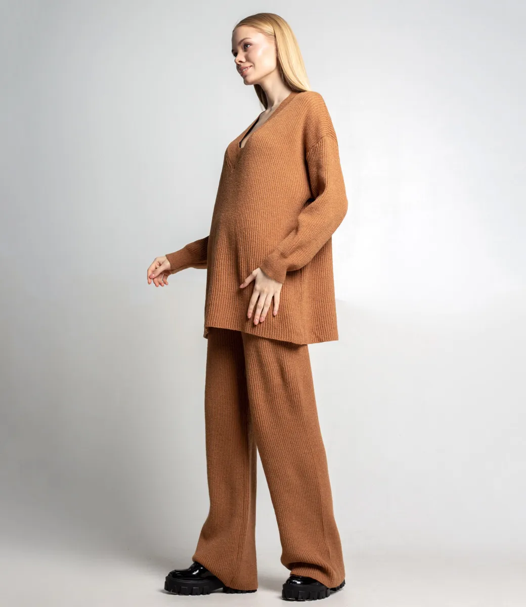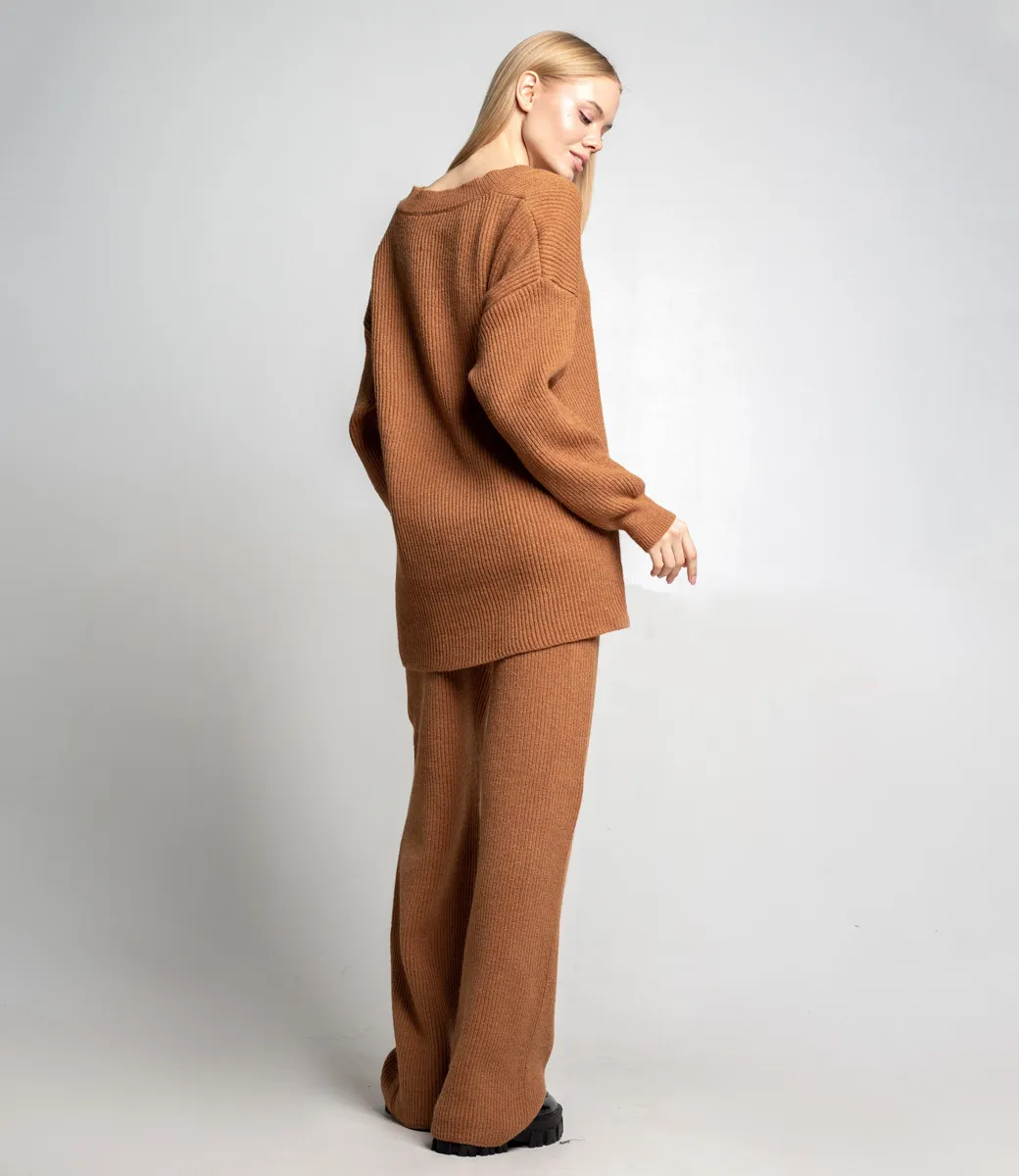 Вязанный брючный костюм незаменим в гардеробе современной девушки. Модель идеально подходит для повседневной носки, прогулок и дома.