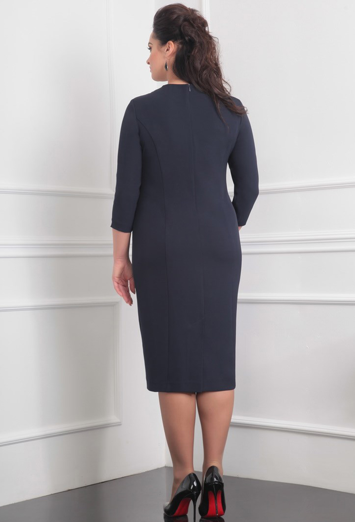 Платье полуприлегающего силуэта. Рукав 3/4 по центру рукава вставка из сеточки. По центральной части переда декоративная вставка из сеточки на которой выполнена вышивка с пайетками. По спинке по центру застёжка на потайную тесьму-молнию По низу спинки закрытая отлетная шлица Длина рукава-46см длина изделия-106см Изделие подходит как для праздничной, так и повседневной носки