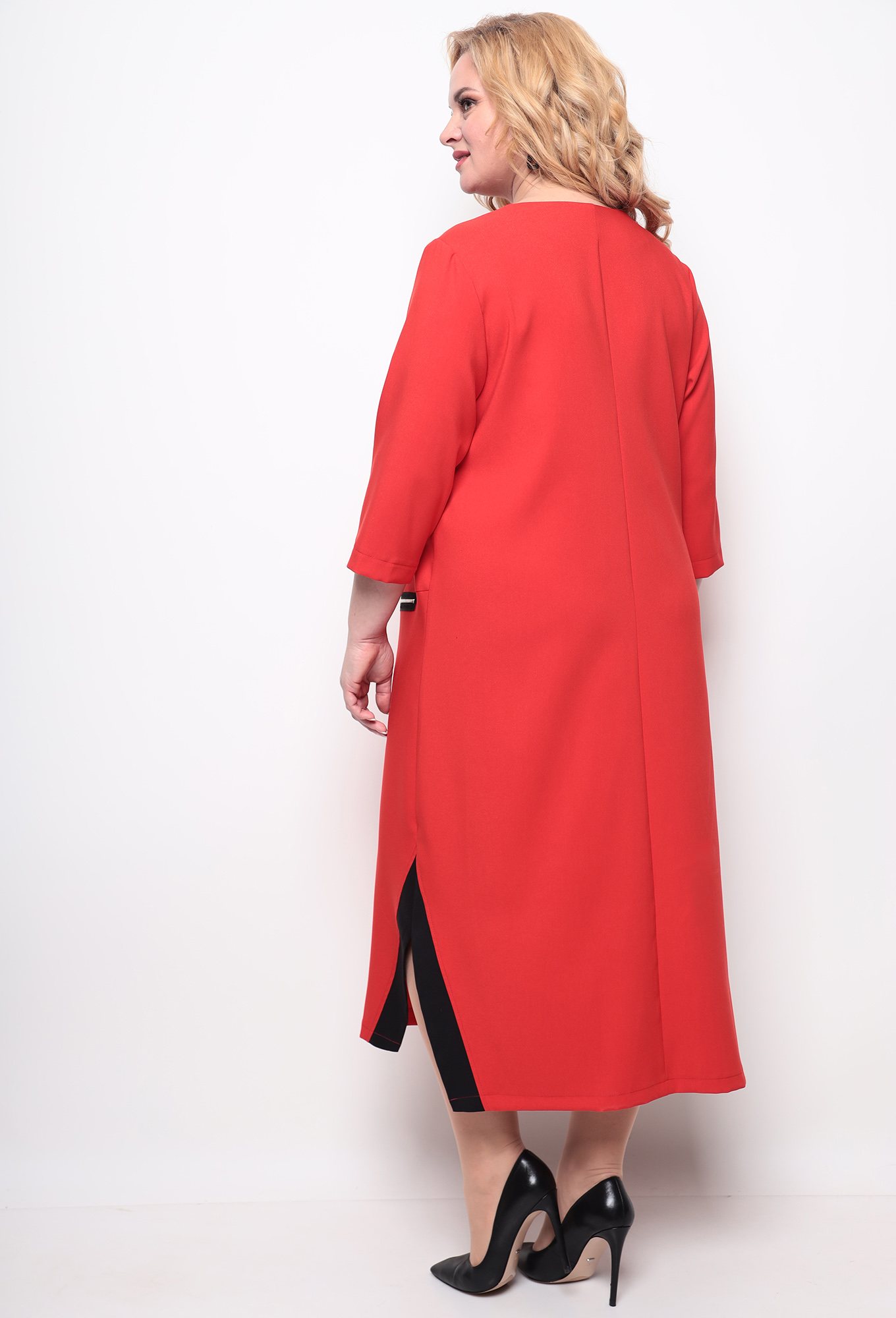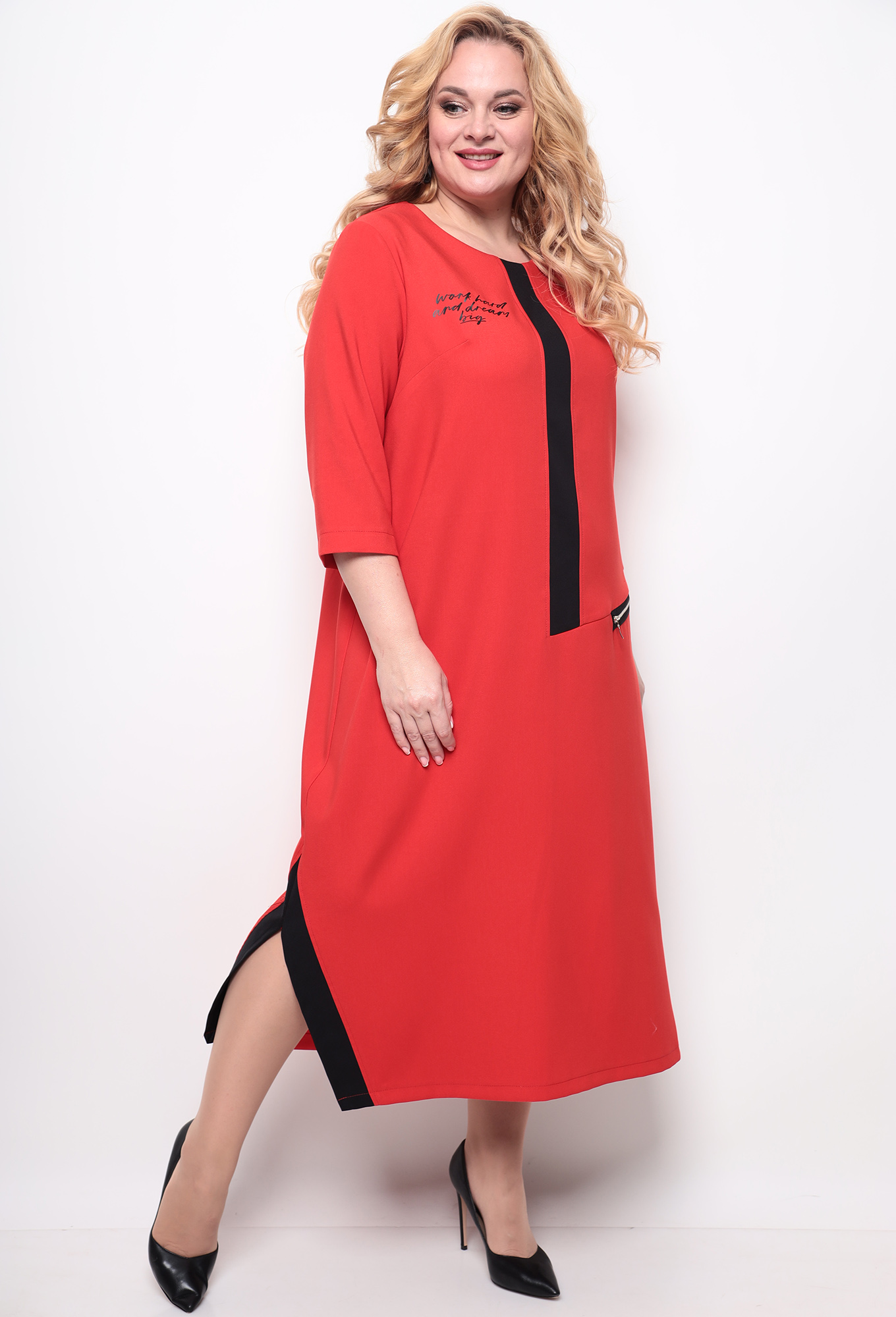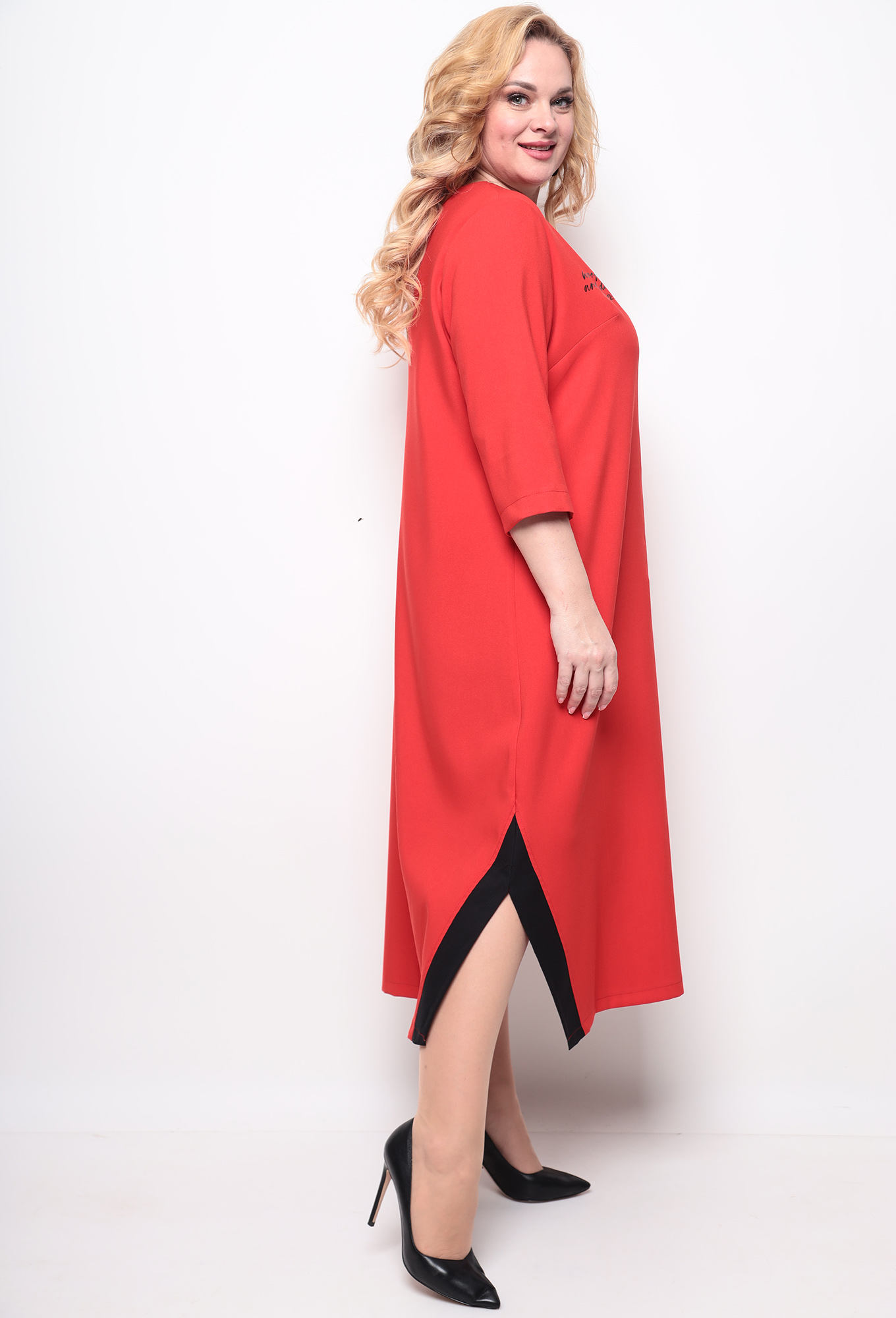 Платье в стиле casual предназначено для повседневной носки, прекрасно сочетается с любой по стилю обувью. Платье свободного кроя, ниже колена, рукав ¾. В качестве декора по переду изделия — вставлена планка из контрастной ткани, также имеется модный принт и имитация кармана, с декоративной молнией. По бокам изделия — разрезы, которые также обработаны контрастной тканью, в цвет декоративной планки. Длина изделия по спинке — 126 см(± 1 см), длина рукава от горловины — 57см(+-1 см). Изделие подойдет на рост 170 см.