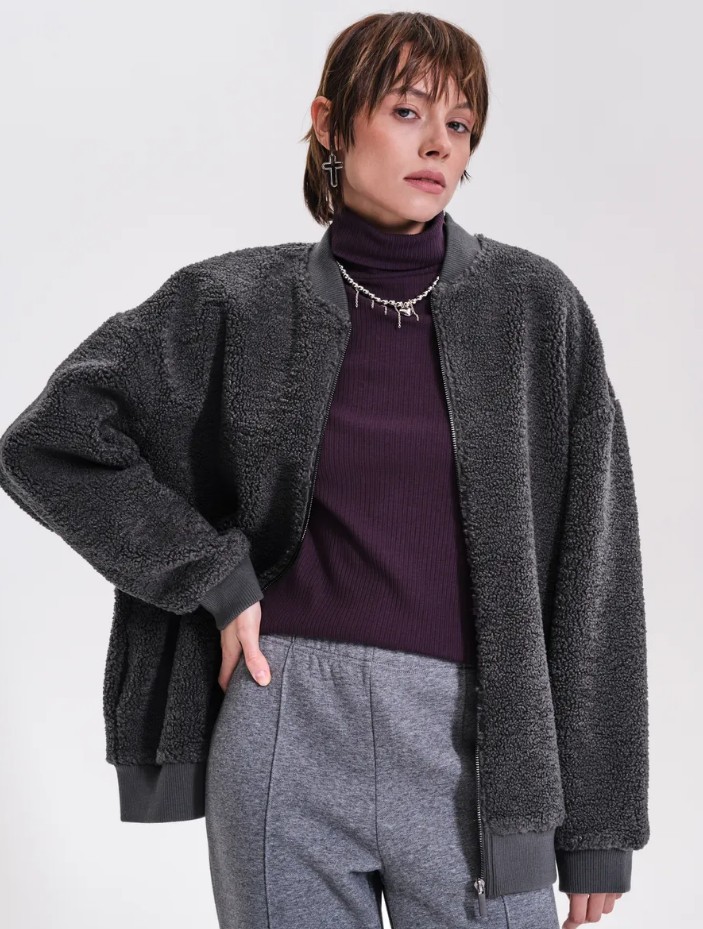Состав: 100%полиэстер, вставка: 60%хлопок 40%полиэстерОписание: Бомбер теплый женский из берберфлиса. Куртка классического спортивного кроя заменит ветровку в прохладную погоду и поможет создать стильный образ. Бомбер объёмного кроя со спущенным плечом подходит для любого типа фигуры. Воротник и манжеты на рукавах и по низу изделия из эластичной рибаны — сохраняет отличную форму в течение длительного времени и стильно выглядит. Женский бомбер из мягкого берберфлиса приятен на ощупь (фактура «барашка»). В составе ткани 100% полиэстер, что обеспечивает долговечность и прочность. По бокам удобные карманы. Бомбер плюшевый застёгивается на металлическую молнию, прочную и долговечную. Бомбер куртка лаконичного дизайна, без принтов и декоративных элементов — можно создать много разных стильных образов. Куртка выполнена в трендовых и при этом универсальных цветах, её легко сочетать с любой одеждой. Уютная и стильная осенняя куртка женская неприхотлива в уходе. Помните о правильном уходе за изделием: рекомендуется стирать при температуре не выше 30 °C, без предварительного замачивания, с изнанки. Это поможет сохранить качество и цвет бомбера на длительное время. Не забывайте о выборе правильного размера. Используйте таблицу размеров на фотографии, чтобы выбрать подходящий для себя вариант. Обратите внимание, что цвет товара на экране вашего устройства может отличаться от реального.