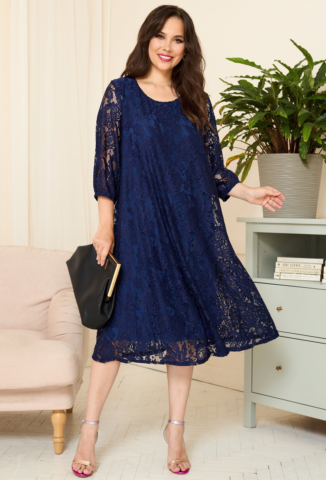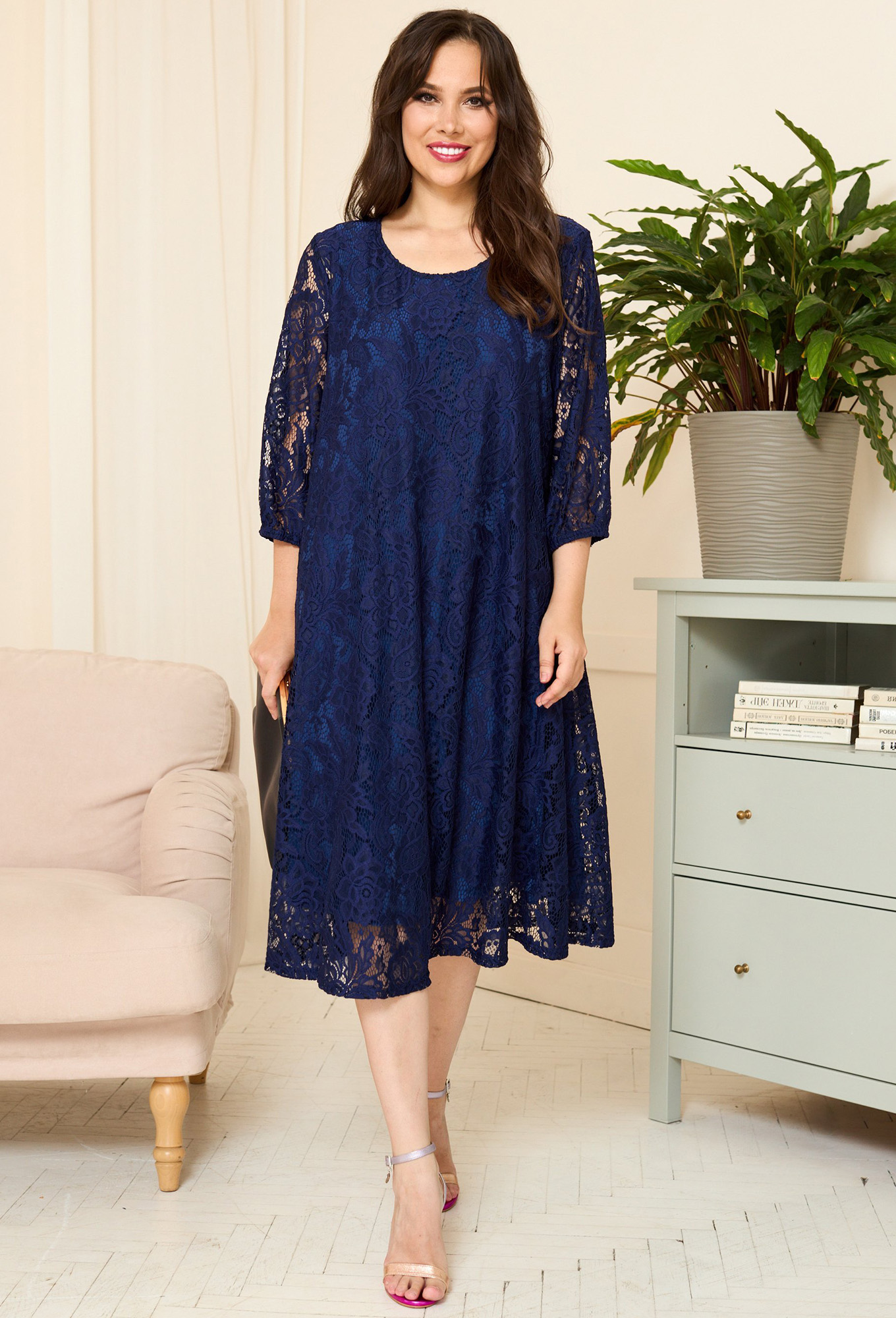 Платье женское из кружевного полотна, на трикотажной подкладке масло. Модель трапециевидного силуэта ,расширенное к низу, рукав 3/4 длины , на резинке. Идеальный вариант как для торжественных случаев , так и для повседневной носки.