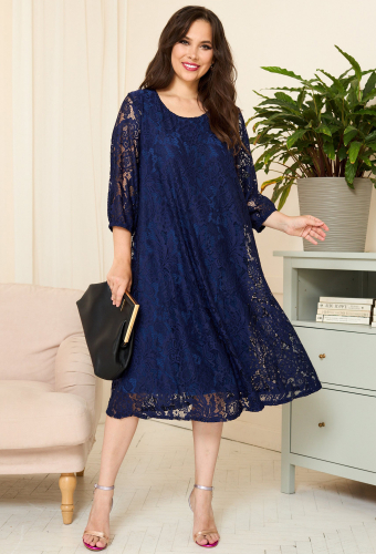 Платье женское из кружевного полотна, на трикотажной подкладке масло. Модель трапециевидного силуэта ,расширенное к низу, рукав 3/4 длины , на резинке. Идеальный вариант как для торжественных случаев , так и для повседневной носки. Рукав выполнен из кружева без подклада.