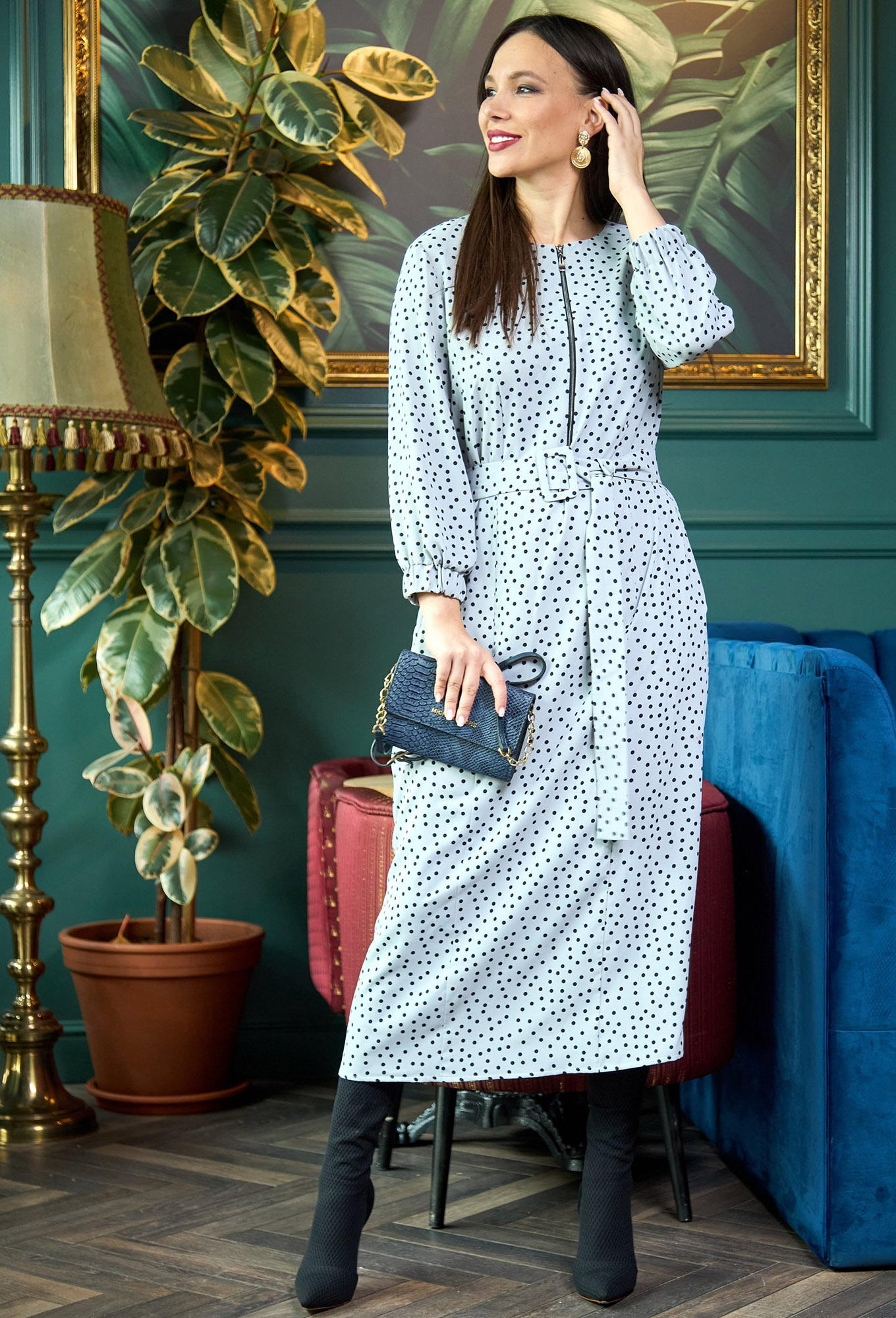 Модель: Анастасия Мак 903 серо-голубой горох