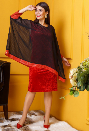 Это элегантное миди-платье – интересное предложение для женщин, которые любят чувствовать себя женственно и комфортно. Изделие выполнено из лёгкой, воздушной ткани с красивым разноцветным принтом. На подкладе. Модель А-образного силуэта с округлой формой горловины со сборкой и укороченными полупрозрачными рукавами кроя реглан со сборкой по низу, собранной на узкую эластичную тесьму. Чтобы сделать модель ещё более эффектной – линию талии подчеркнул ремнем.