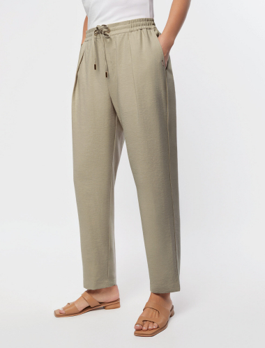 Брюки выполнены из плотного лиоцелла. Модель дополнена карманами и поясом с эластичной резинкой и регулируемым шнурком с золотистой фурнитурой. Ткань изделия отлично держит форму, плавно драпируется и не просвечивает. В теплое время года приятно охлаждает кожу. Добавление синтетических волокон в составе изделия, предотвращает сминаемостьи поддерживает формоустойчивость. Брюки сочетаются в костюме с топом D23.063 и блузкой D29.266, D29.267 и жилетом D27.002