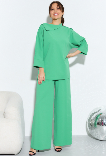 Костюм выполнен из хлопкового футера 3х нитки, плотного трикотажа имеющего небольшое механическое растяжение. Рукав реглан имеет глубокую пройму, что делает данную модель более комфортной, от манжета до молнии настрочена декоративная тесьма. Брюки имеют высокую посадку, по поясу на резинке, в боковых швах карманы, к низу немного заужены. Длина брюк по боковому шву 104 +-1см, по внутреннему шву 76+-1см. Длина толстовки по спинке от горловины 63+-1см., длина рукава от горловины 72 см.