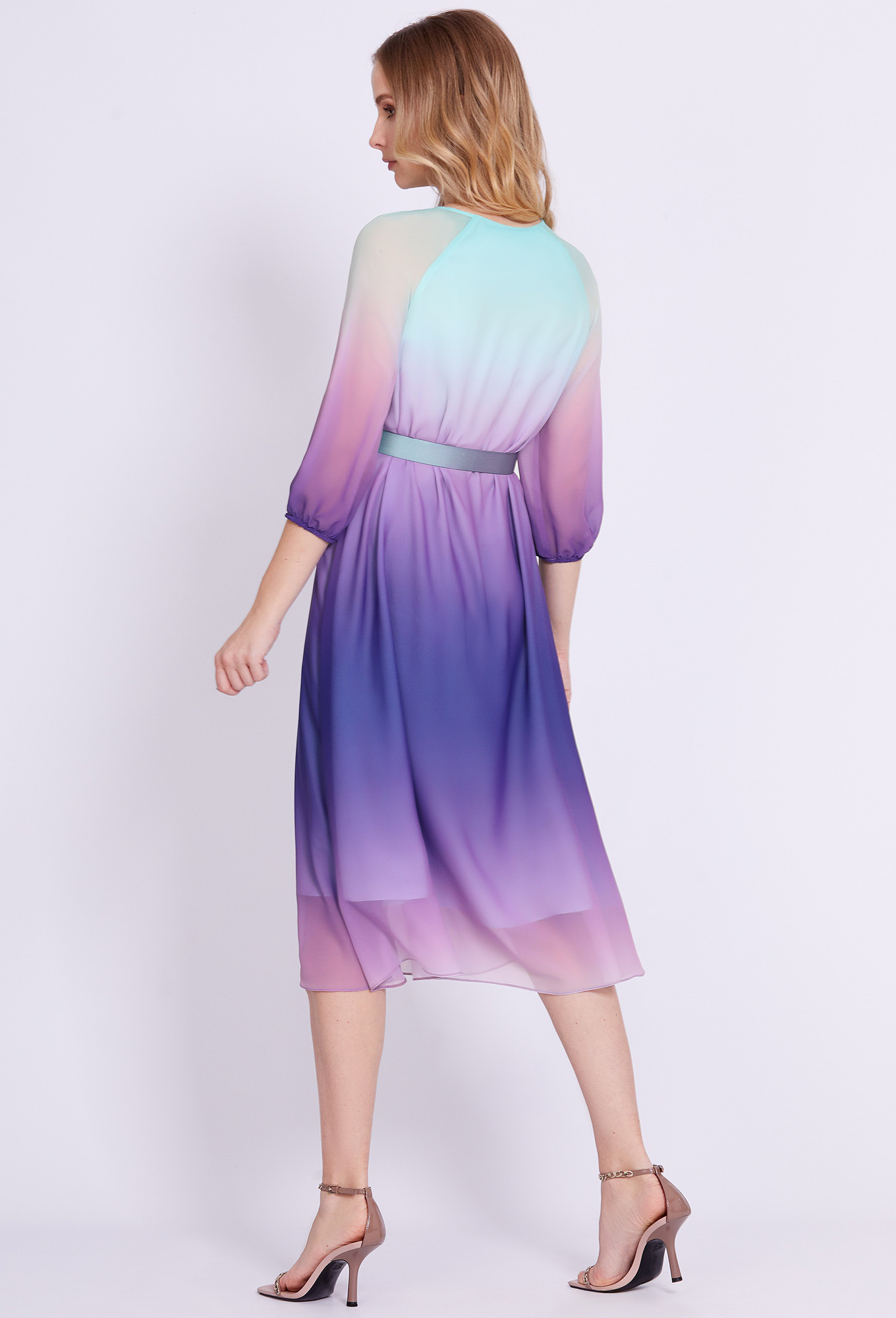 Это элегантное миди-платье – интересное предложение для женщин, которые любят чувствовать себя женственно и комфортно. Изделие выполнено из лёгкого, воздушного шифона с красивым разноцветным принтом и 100% вискозной подкладки, обеспечивающей должное удобство при надевании и ношении. Модель А-образного силуэта с округлой формой горловины со сборкой и укороченными полупрозрачными рукавами кроя реглан со сборкой по низу, собранной на узкую эластичную тесьму. Чтобы сделать модель ещё более эффектной – линию талии подчеркнули поясом-тесьмой с двумя D-пряжками.