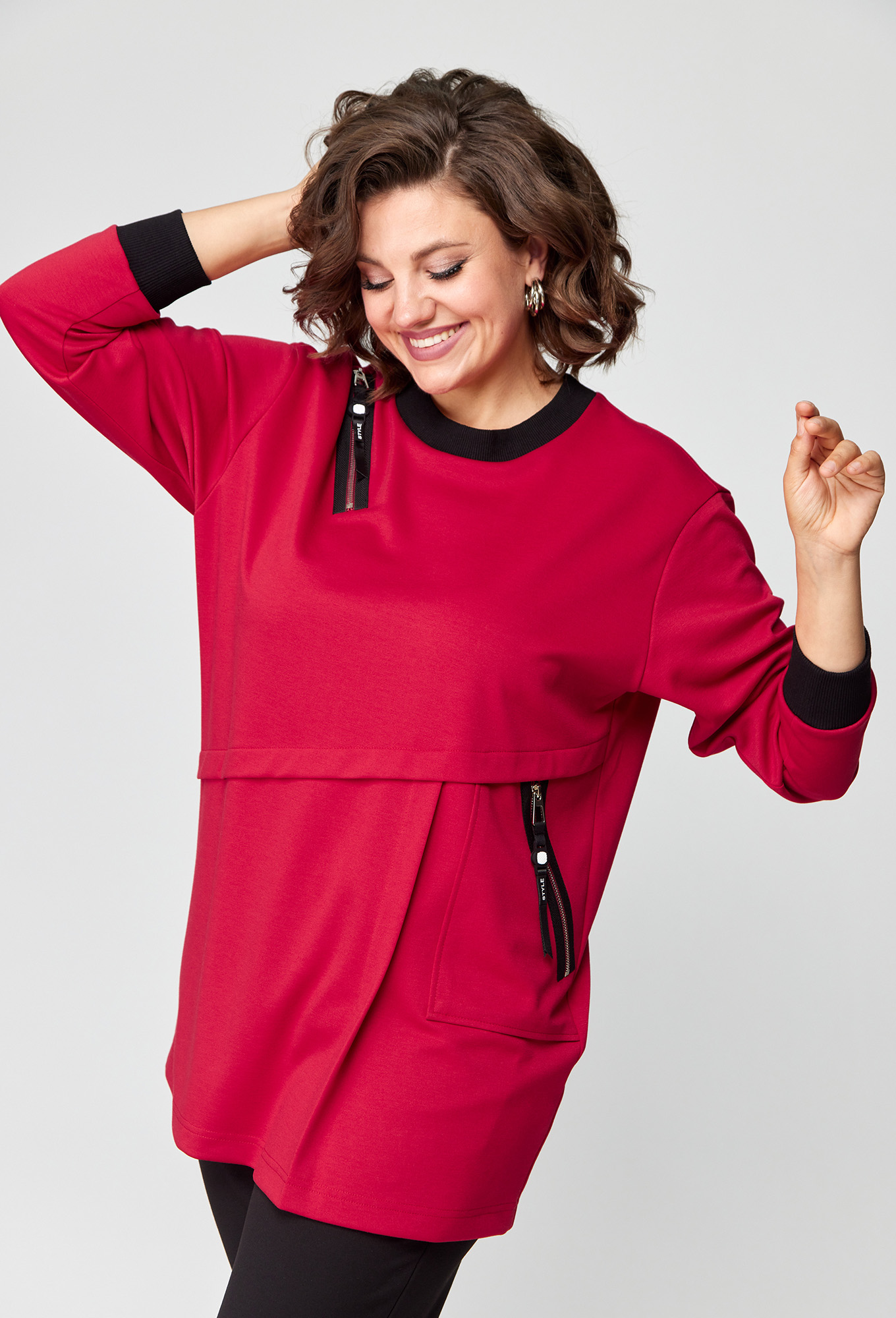 Джемпер прямого силуэта, длиной закрывающей бедра.