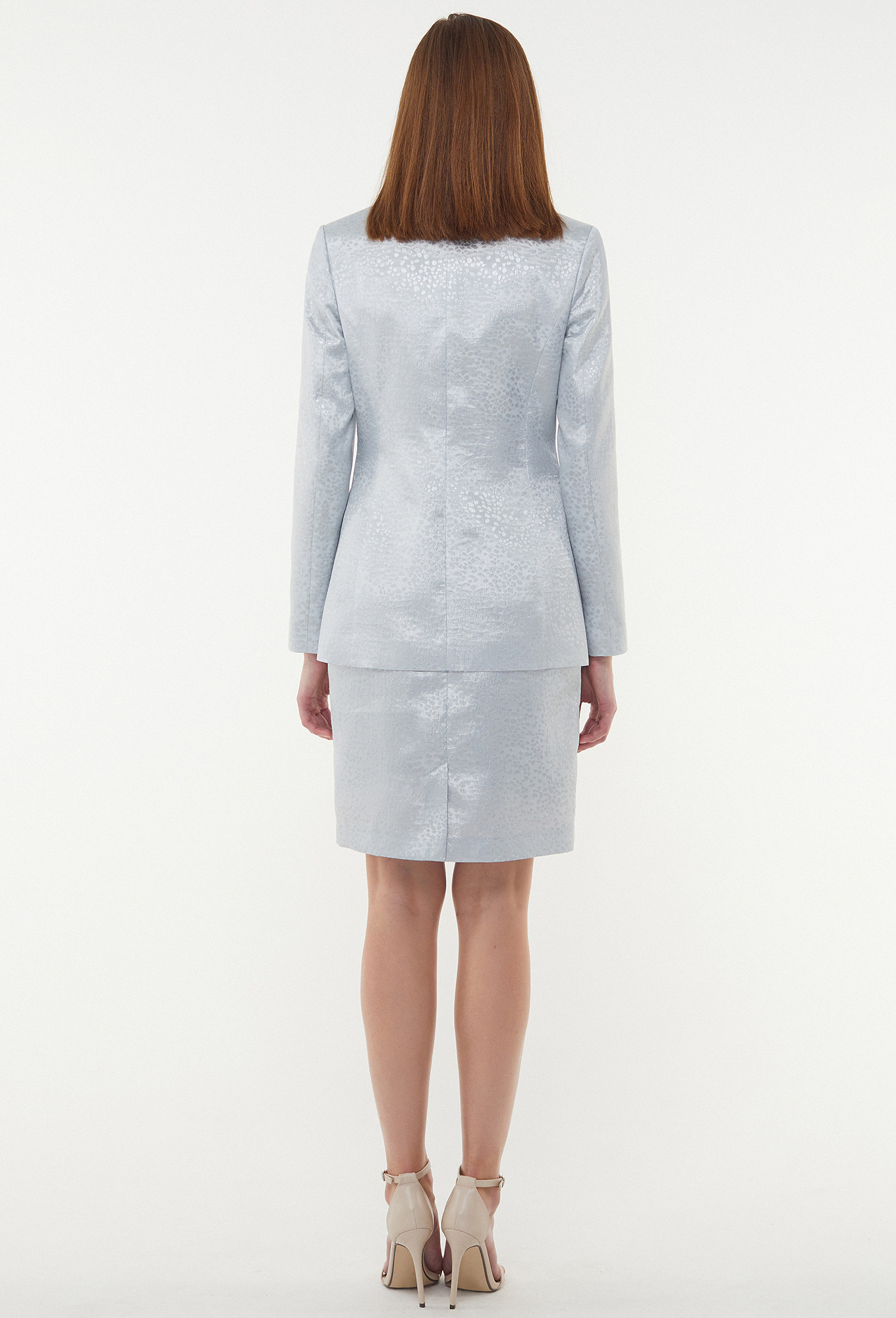 Удобный однобортный жакет полуприлегающего силуэта. Перед с фигурным вырезом горловины, с застёжкой на петли-пуговицы и двумя функциональными карманами с рамками. Ррукава втачные двушовные. Воротник-стойка, на подкладке.