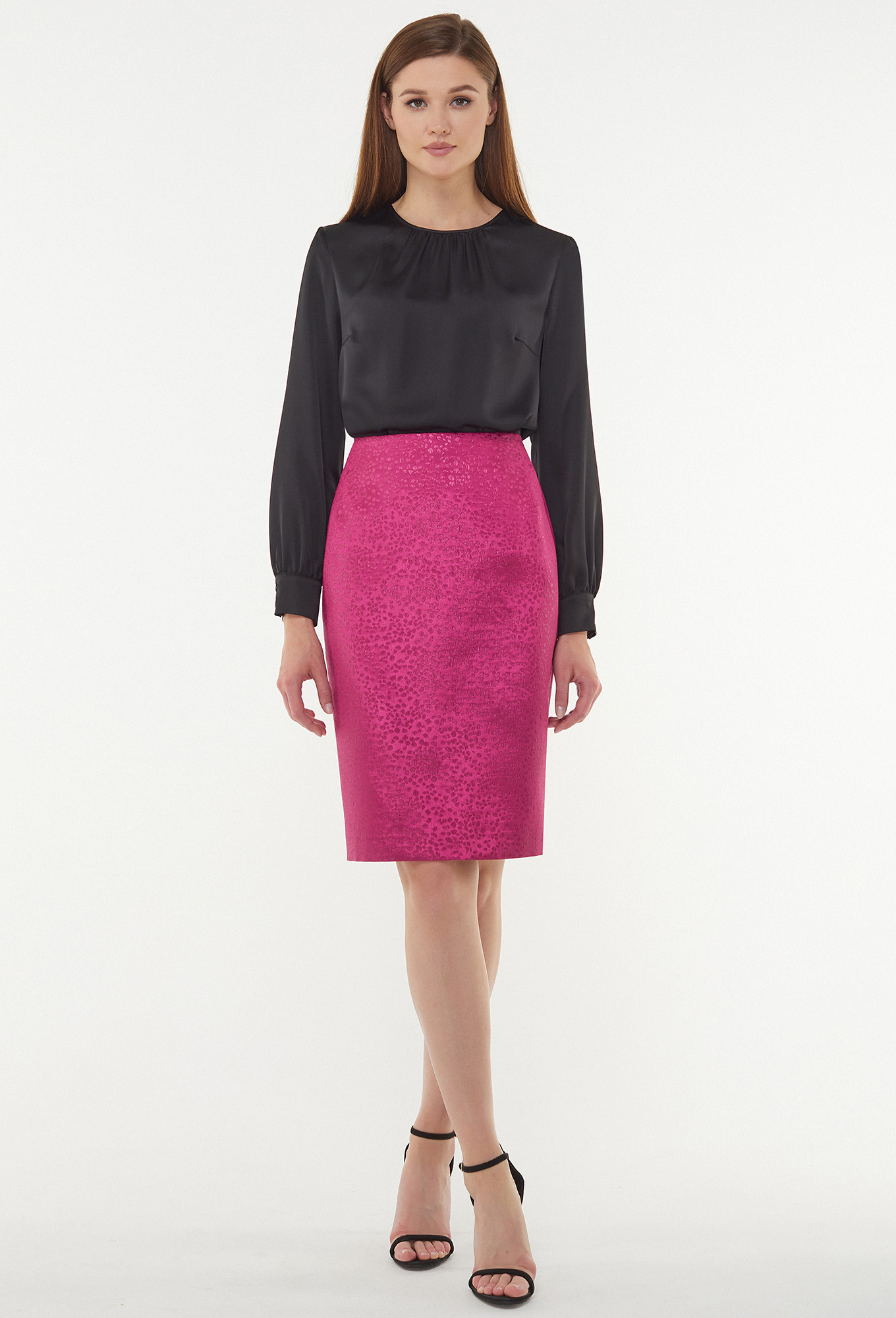 Юбка-карандаш  на обтачке, в среднем шве спинки обработаны потайная молния и шлица, на подкладке.