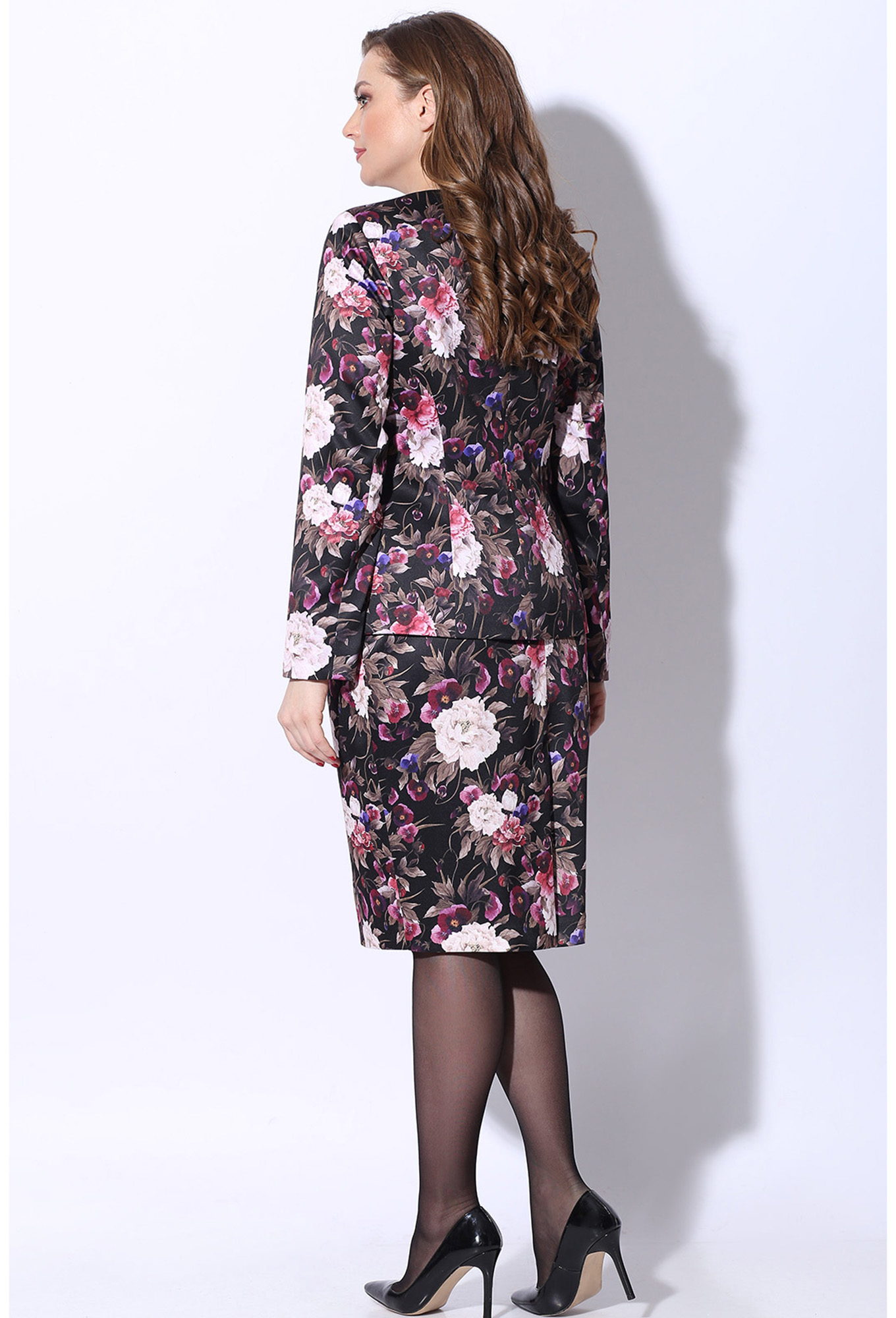 Юбка полуприлегающего силуэта на подкладке на притачном поясе с резинкой, зауженная к низу. Застежка на потайную тесьму молнию в среднем шве заднего полотнища и шлицей.