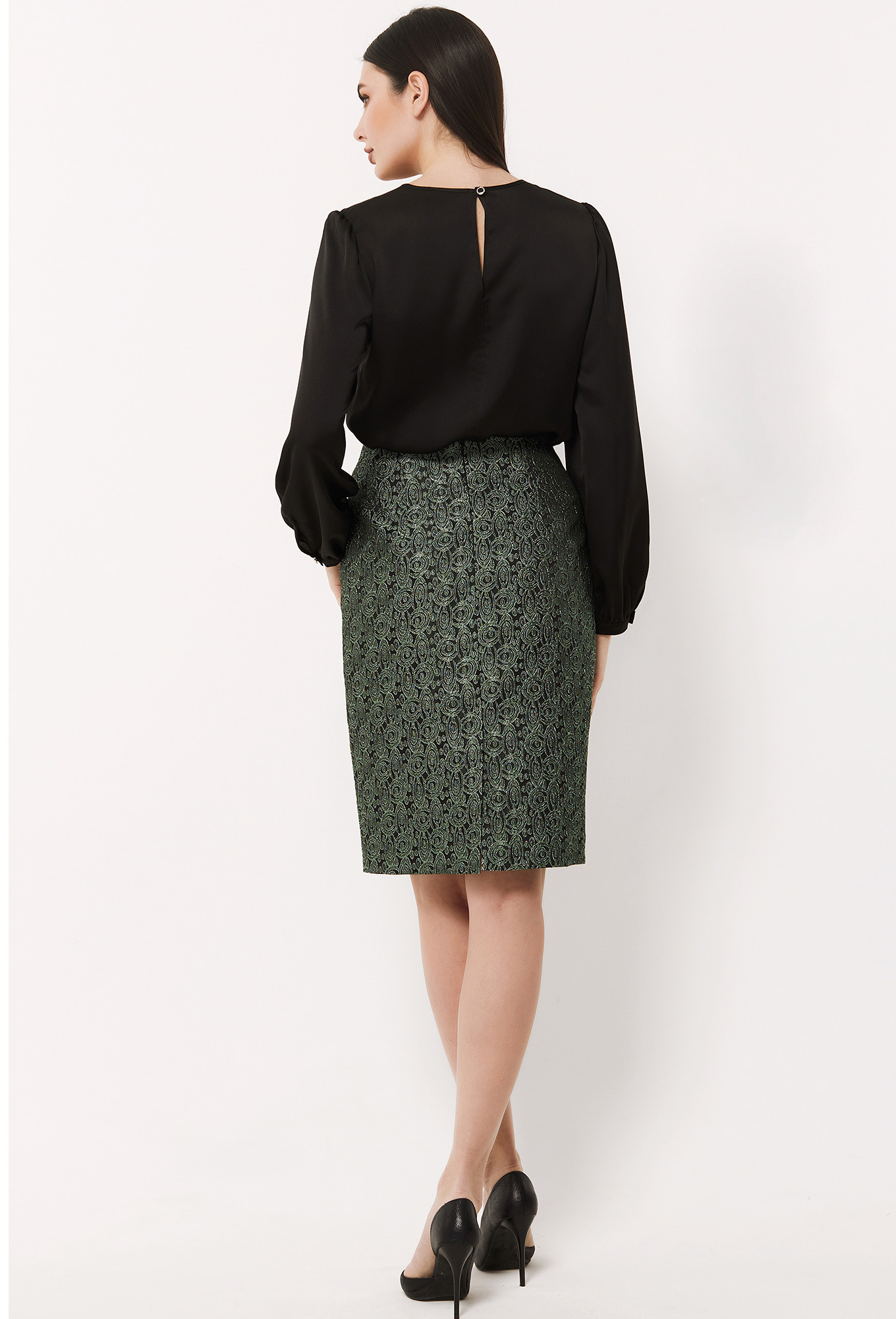 Юбка-карандаш на обтачке, в среднем шве спинки обработаны потайная молния и шлица, на подкладке.