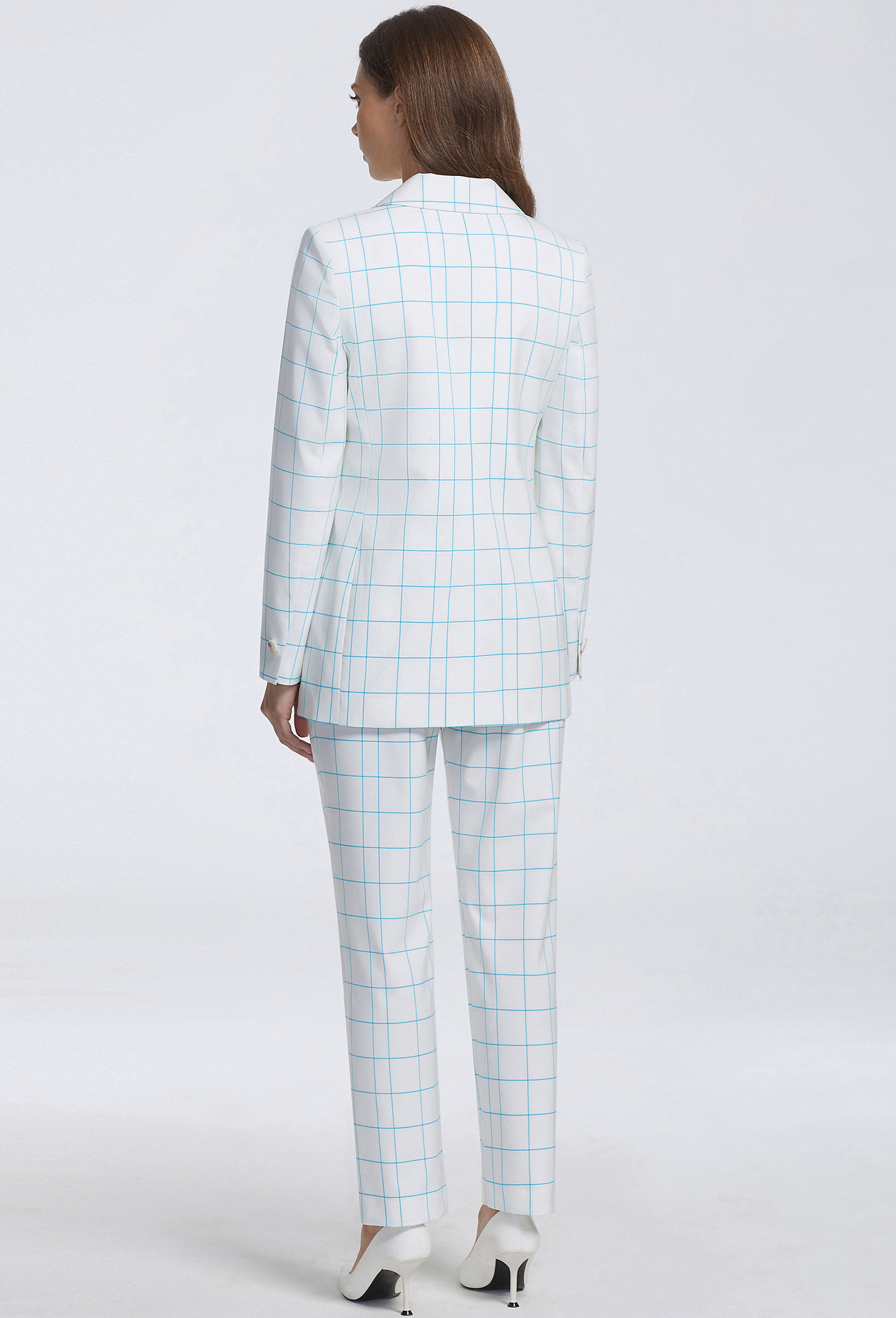 Двубортный жакет полуприлегающего силуэта из приятной испанской ткани с добавлением вискозы, с интересным сочетанием раппорта клетки, выполнен по всем классическим законам. Модель с отложным воротником и широкими лацканами с глубоким вырезом по переду, застежкой на петли-пуговицы и карманами с листочками. Рукава втачные двухшовные со шлицами и отделочными пуговицами. На подкладке.